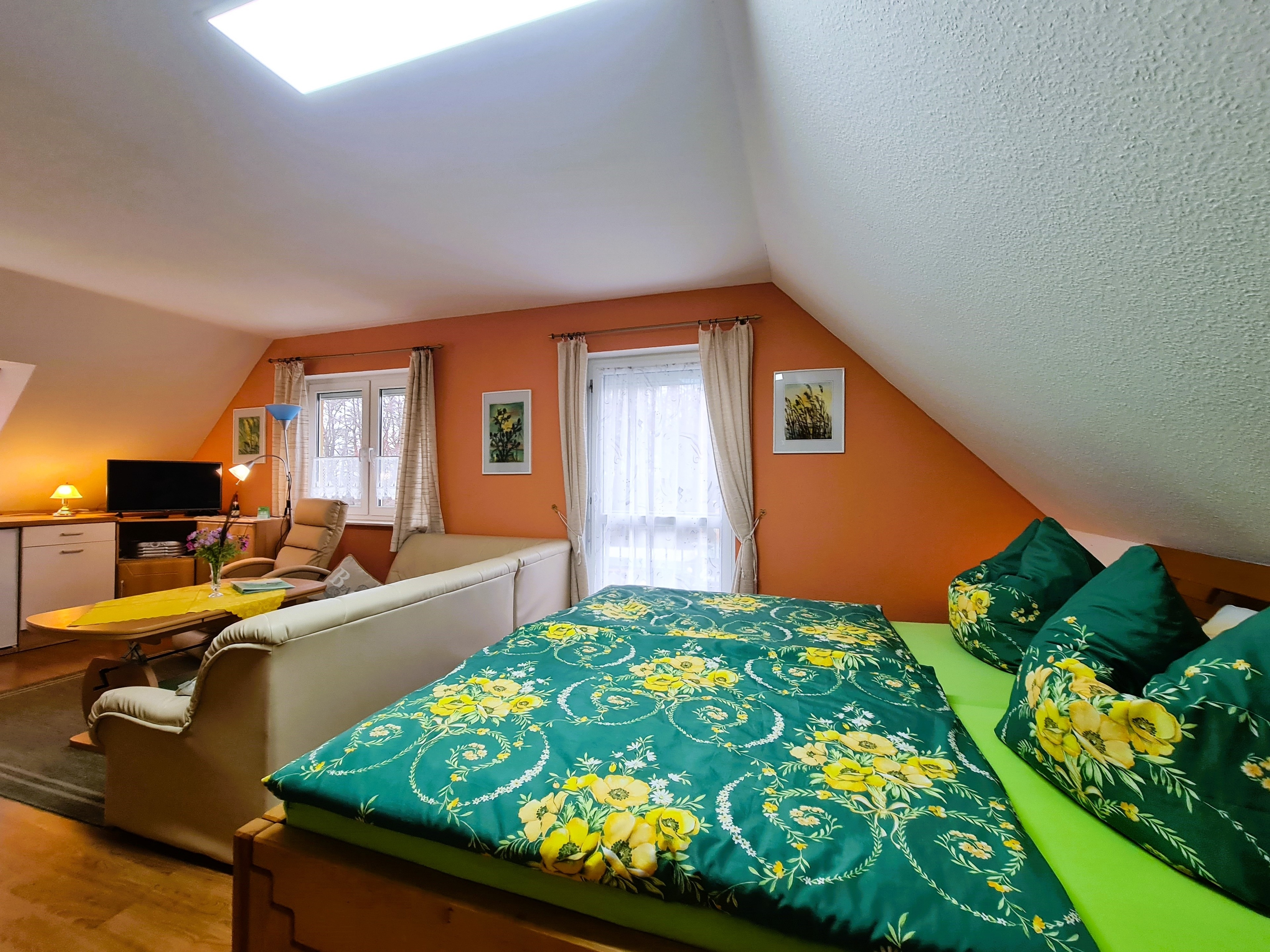 Die Eigentümergeführte Ferienwohnung verfügt über einen eigenen Eingang und einen kleinen Freisitz im Garten.