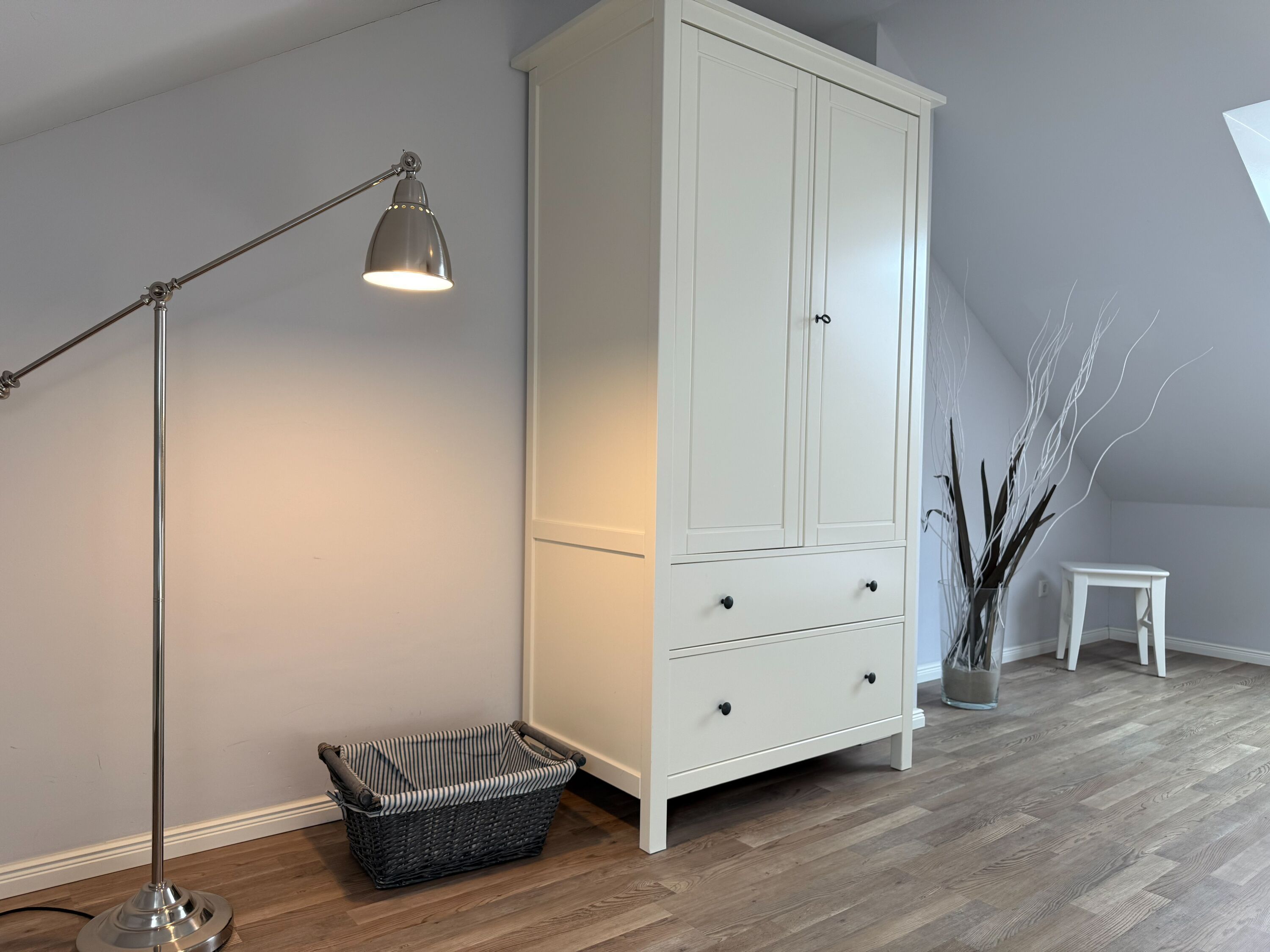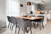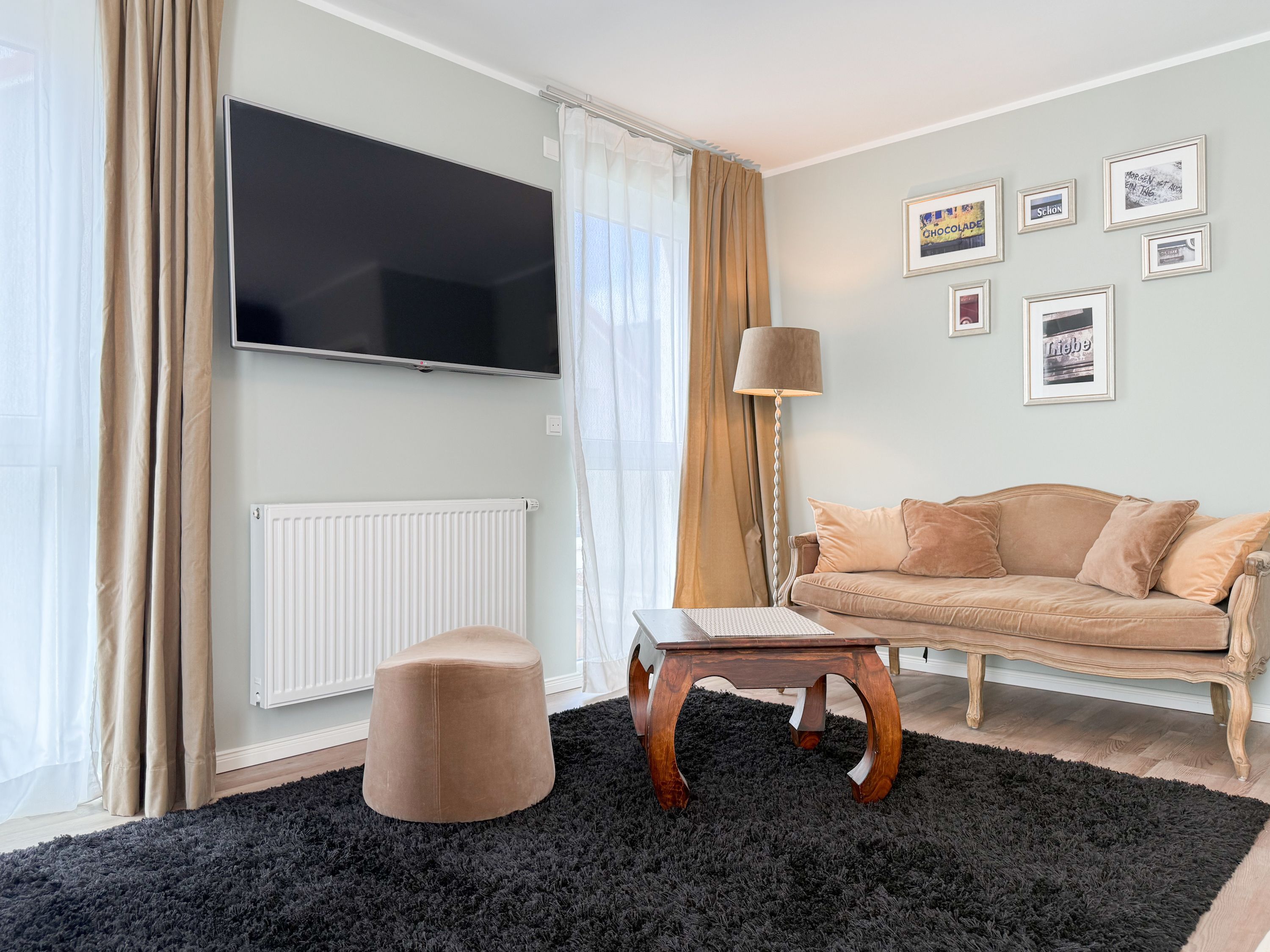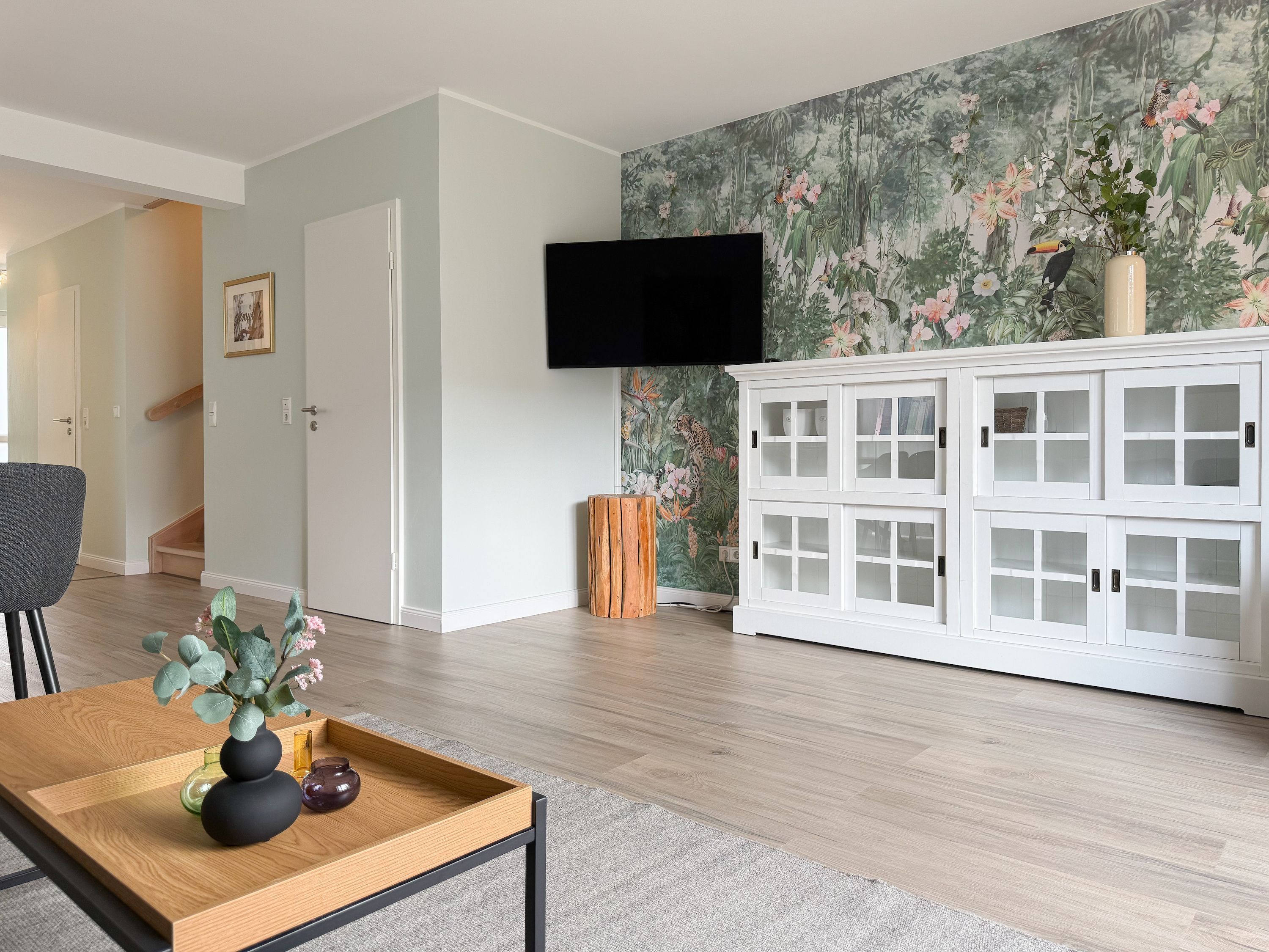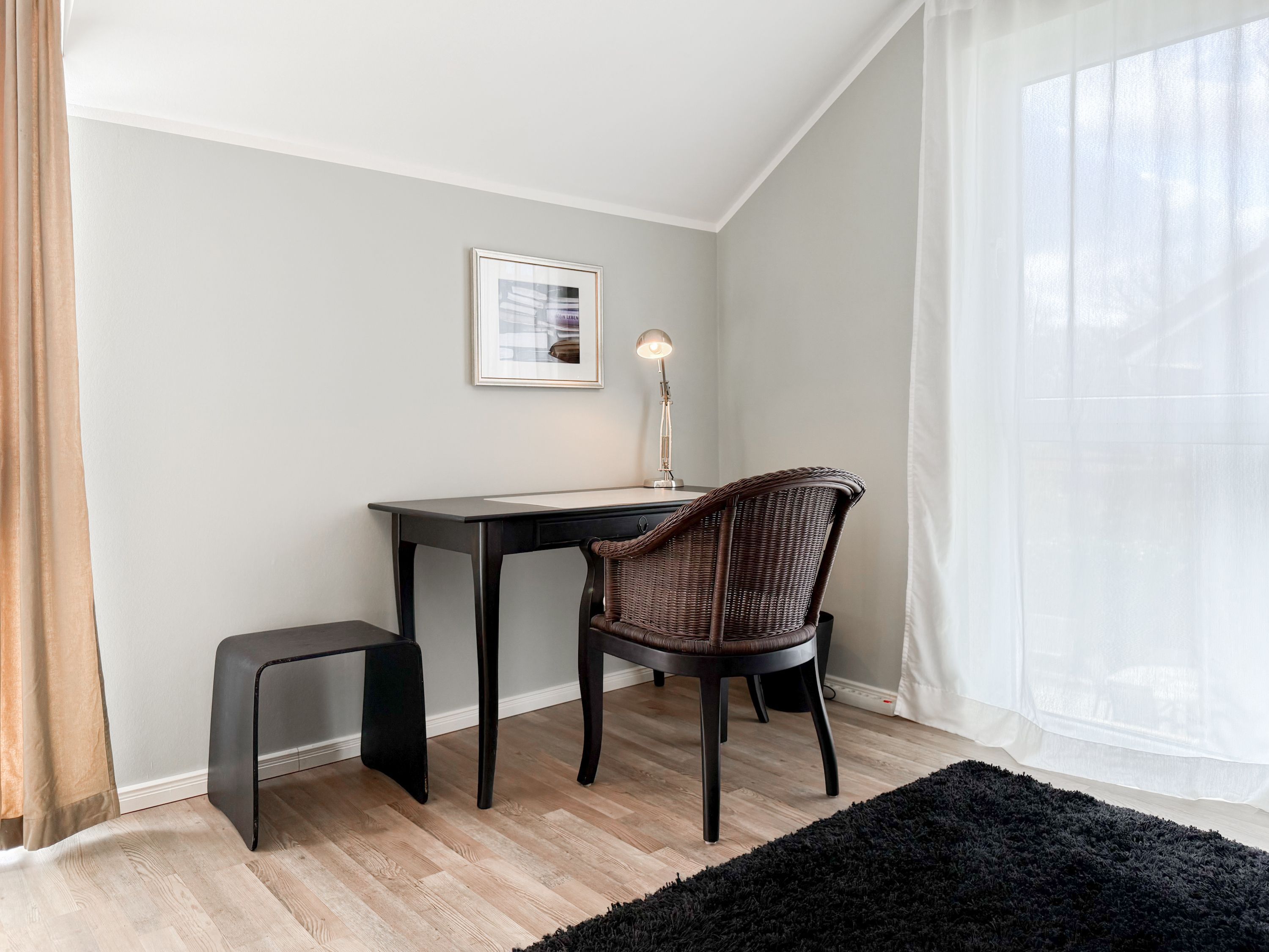 Es erwartet Sie ein tolles Doppelhaus mit 3 separaten Schlafzimmern und 2 Duschbädern. Sonnige Räumlichkeiten auf über 100 qm Wohnfläche und die geschmackvolle Einrichtung mit liebevollen Details schaffen ein behagliches Ambiente für 6 Personen. Im Erdgeschoss erwartet Sie ein großzügiger Wohnbereich, der mit einem gemütlichen Ecksofa und TV eingerichtet ist. Die vorgelagerte Sonnenterrasse in Südausrichtung garantiert erholsame Urlaubszeit. Die großzügige Einbauküche ist bestens ausgestattet und lädt zum gemeinsamen Kochen ein. Der anschließende Essbereich, mit großem Esstisch und gemütlichen Sesseln, bietet ausreichend Platz für gemeinsame Mahlzeiten und geselliges Beisammensein. Im Eingangsbereich befindet sich eine Garderobe und ein neuwertiges Tageslichtbad mit Dusche, Waschbecken und WC. Eine Waschmaschine ist im separaten Abstellraum untergebracht, ebenfalls im Erdgeschoss. Im Obergeschoss befindet sich ein weiteres Duschbad mit Doppelwaschtisch und Fenster sowie 2 separate Schlafzimmer. Schlafzimmer 1 ist äußerst großzügig und mit einem Doppelbett, einer Sitzecke mit TV und einem Schreibtisch für das Home Office eingerichtet. Schlafzimmer 2 verfügt über 2 Einzelbetten und einen gemütlichen Relaxsessel. Im Dachgeschoss befindet sich das 3. Schlafzimmer mit einem Doppelbett (180x200), Kleiderschrank und Sessel. Die Dachflächenfenster lassen sich über ein Rollo verdunkeln, alle anderen Fenster des Hauses sind mit elektrischen Außenjalousien versehen. WLAN steht selbstverständlich kostenlos zur Verfügung. Vor dem Haus befinden sich zwei Parkplätze. (1 Carport und 1 Außenstellplatz). Fahrräder können sicher und trocken im Schuppen am Haus untergestellt werden.