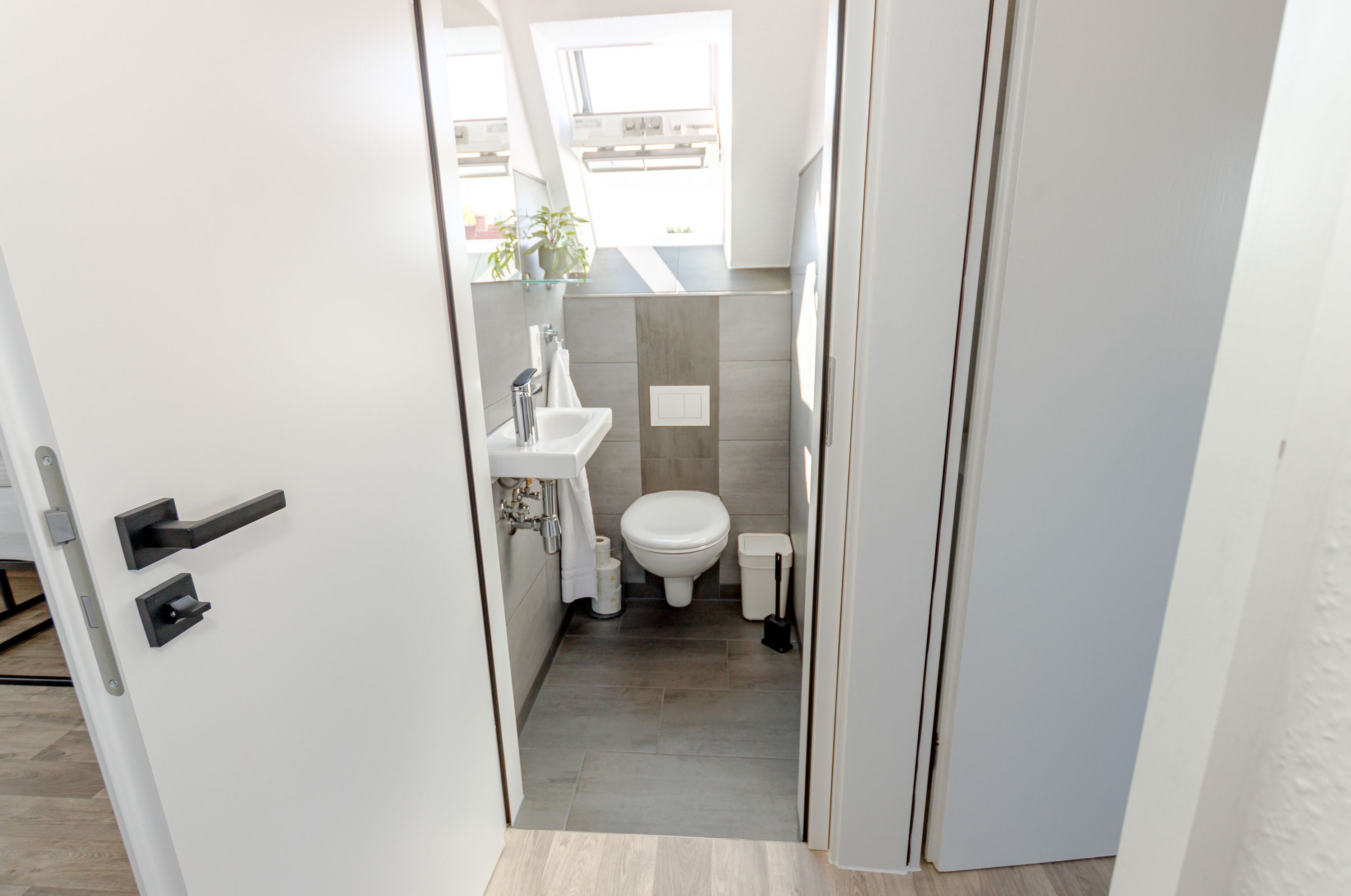 1 Badezimmer im Erdgeschoss und ein WC im Obergeschoss