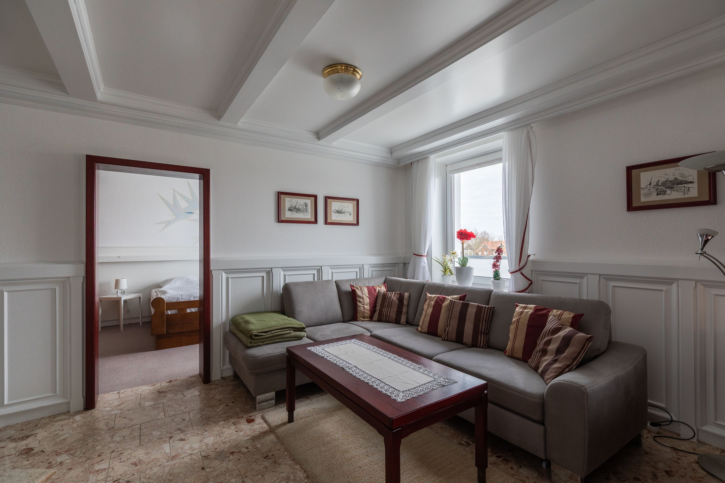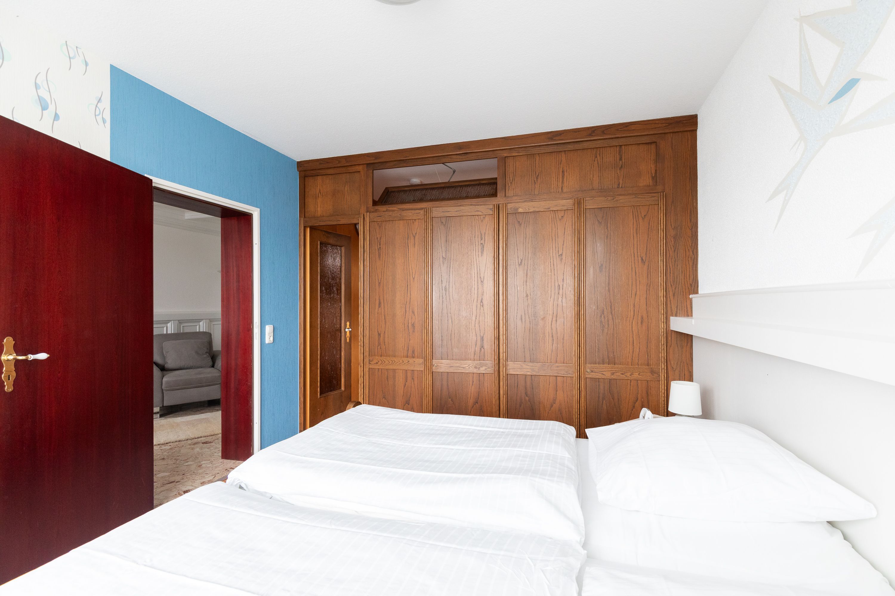 Mit einer Größe von ca. 50 m² Wohnfläche ist die Wohnung komplett bis zu 4 Personen ausgestattet, Wohnzimmer mit angrenzender, kompletter Einbauküche (Backofen, Cerankochfeld, Dunstabzugshaube, Geschirrspüler, Toaster, Wasserkocher, Kaffeemaschine, Kühlschrank), Essplatz für 4 Personen, Sofa-Ecke, 1 Schlafzimmer mit 2 Doppelbett, Fenster, Kleiderschrank und Zugang zum Balkon, das zweite Schlafzimmer mit Etagenbett und Fenster erreicht man über das Schlafzimmer 1, Bad mit Dusche und WC, 1 Flatscreen TV im Wohnzimmer, Nichtraucherwohnung, keine Haustiere, PKW-Stellplatz direkt am Haus.