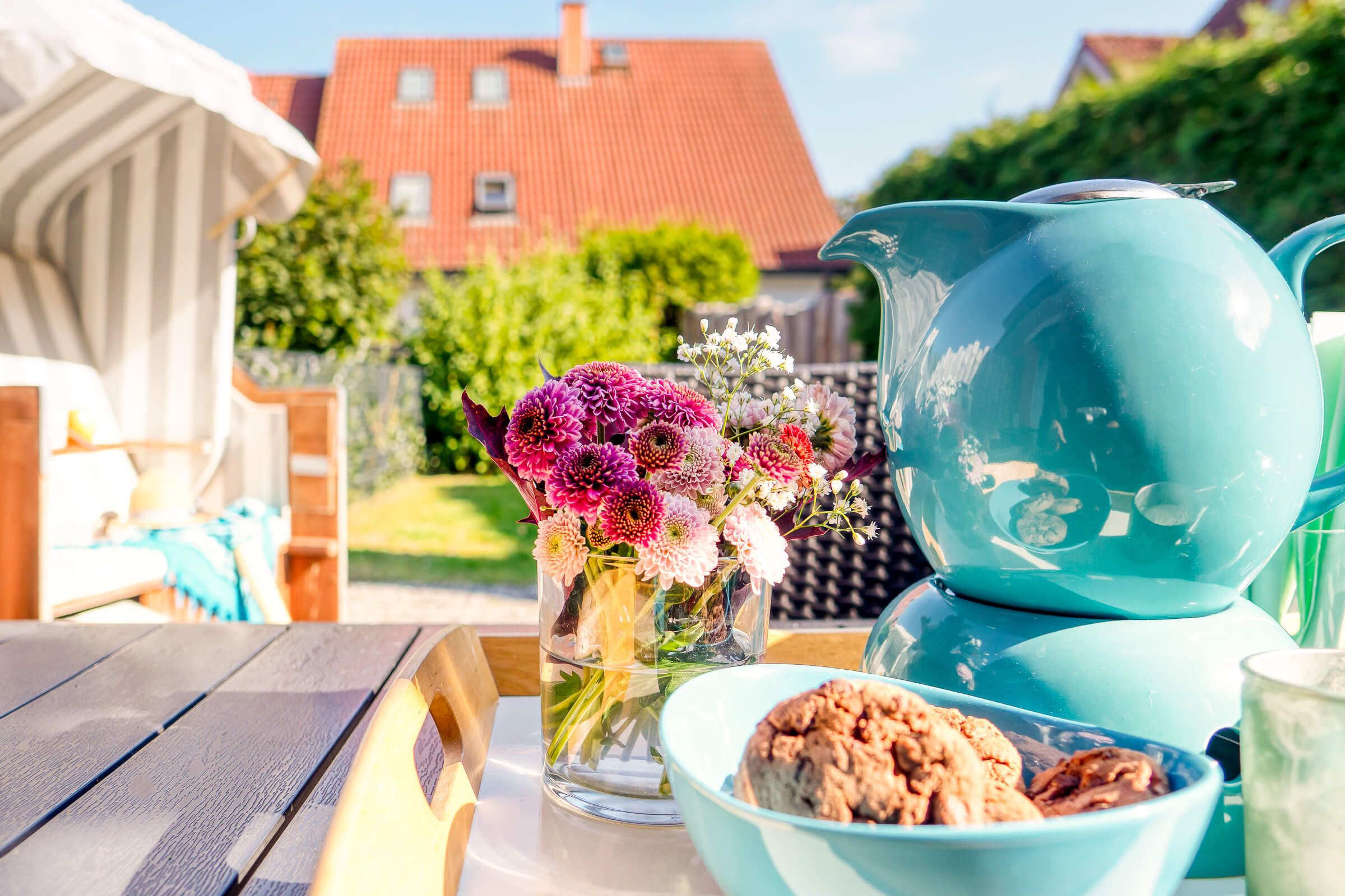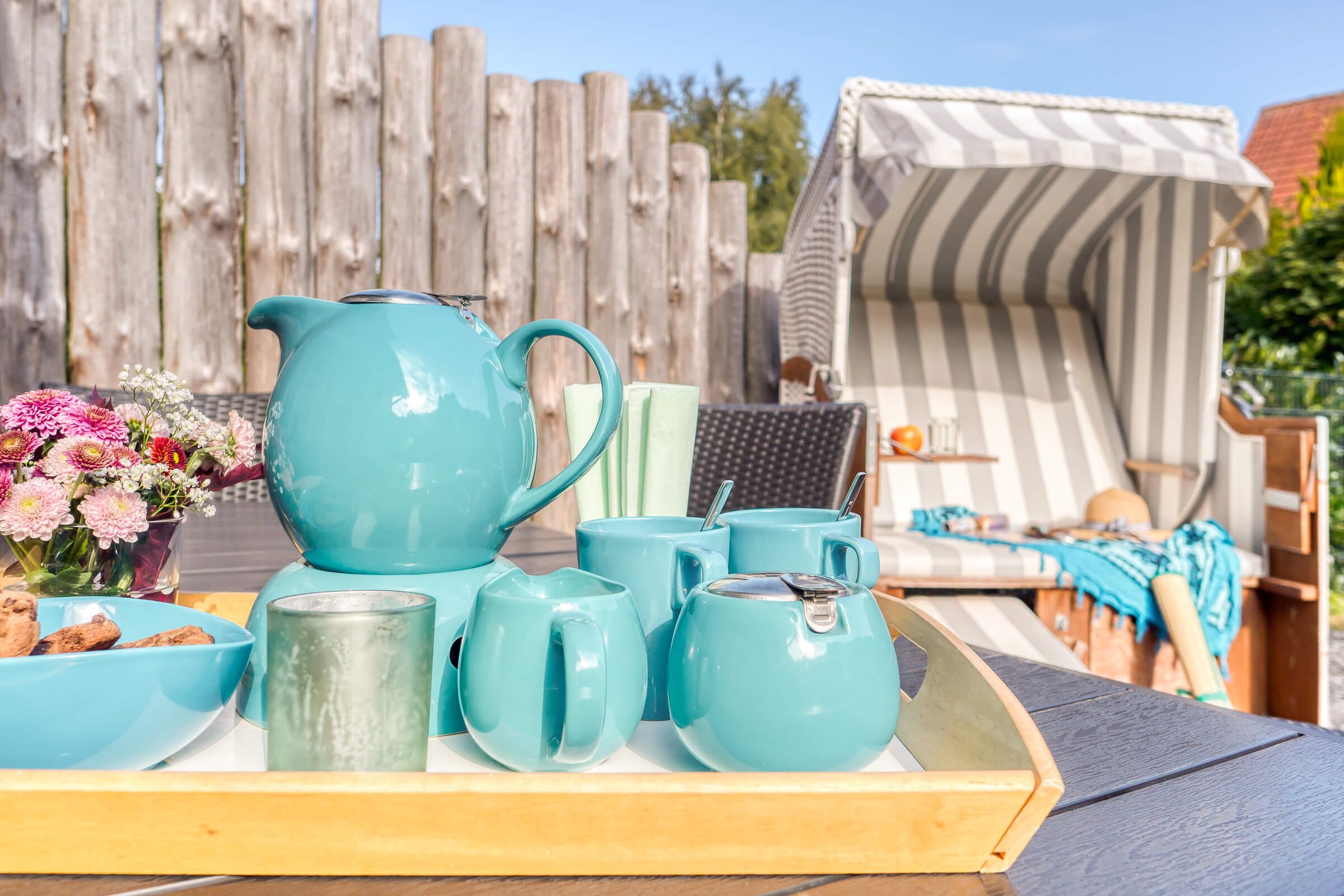 Im Haus finden Sie eine abwechslungsreiche Auswahl an Büchern, Spielen und DVDs, außerdem WLAN, TV-Geräte und Audio-Anlagen und eine reichhaltig ausgestattete Küche zum Kochen, Backen und Genießen. Mit Strandkorb, Markise, Sonnenliege, Kugelgrill sowie einem großen Tisch mit Stühlen und Klappsesseln können Sie schöne Stunden im Garten verbringen und z.B. nach der Sauna an der frischen Luft relaxen.