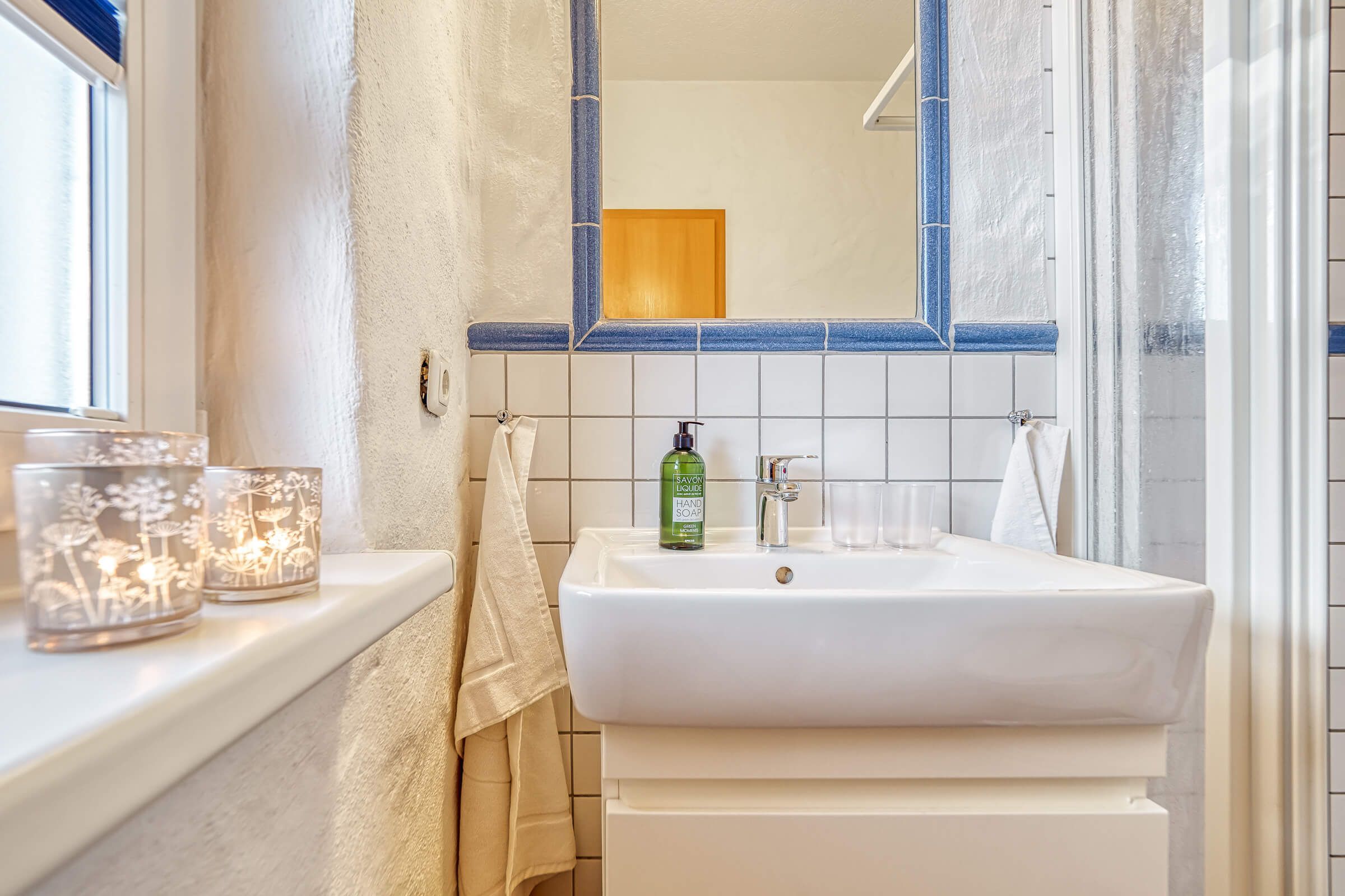 2 Duschbäder mit WCs und Waschtischen mit viel Stauraum im EG und OG