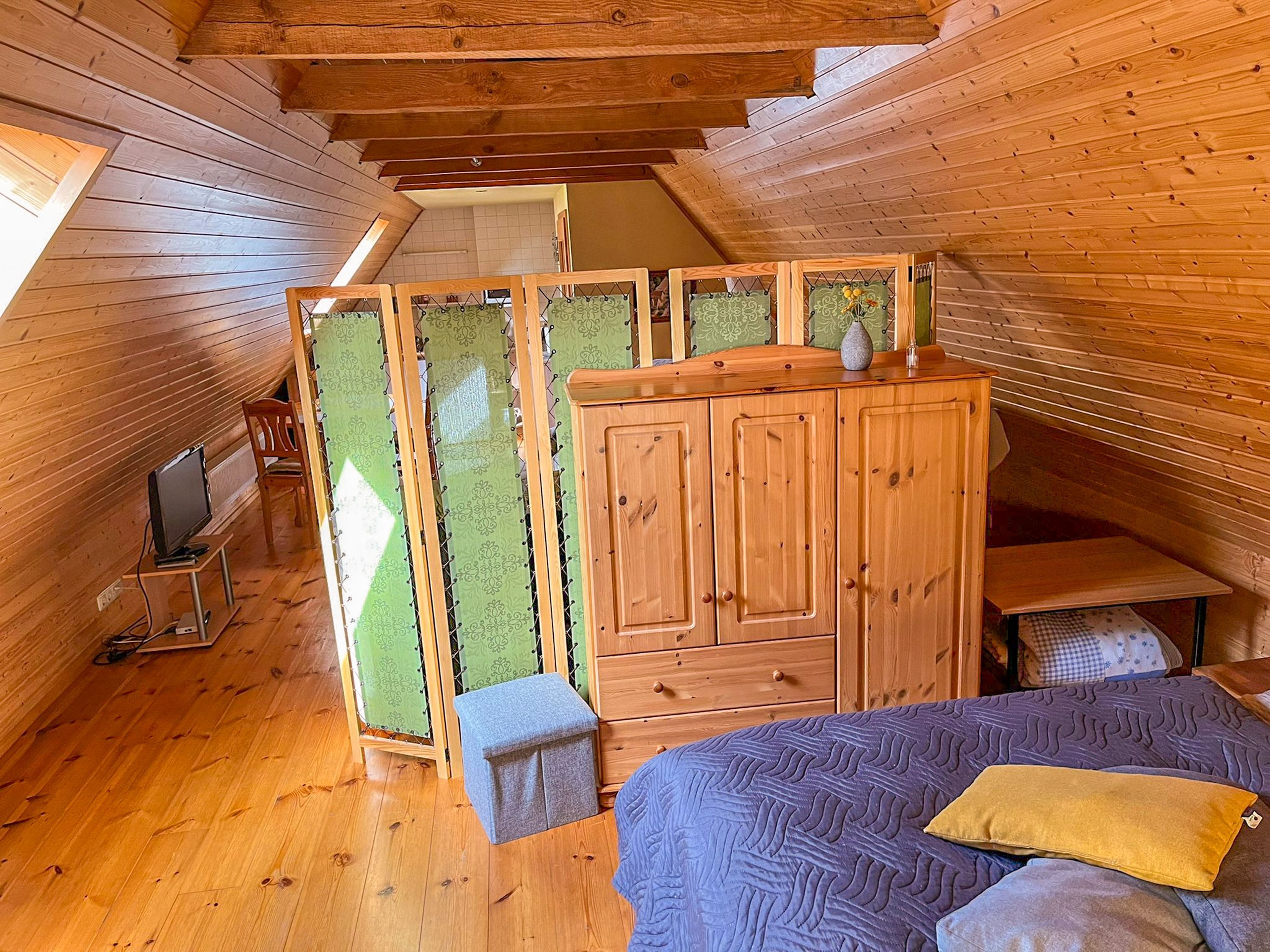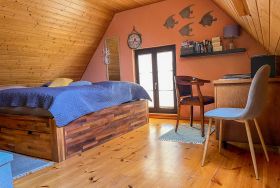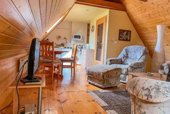 Die 70 m² große Ferienwohnung befindet sich im separaten Nebengebäude und bietet Platz für 2 Personen. Eine Aufbettung für eine erwachsene Person oder ein Kind auf einer Doppelbettcouch möglich. Ein Kinderbett ist vorhanden.