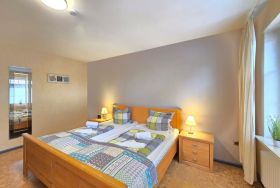 Schlafzimmer: Ein komfortables Doppelbett sorgt für erholsame Nächte.