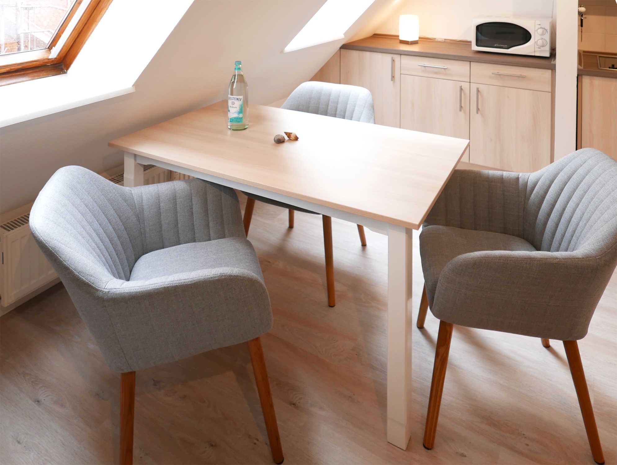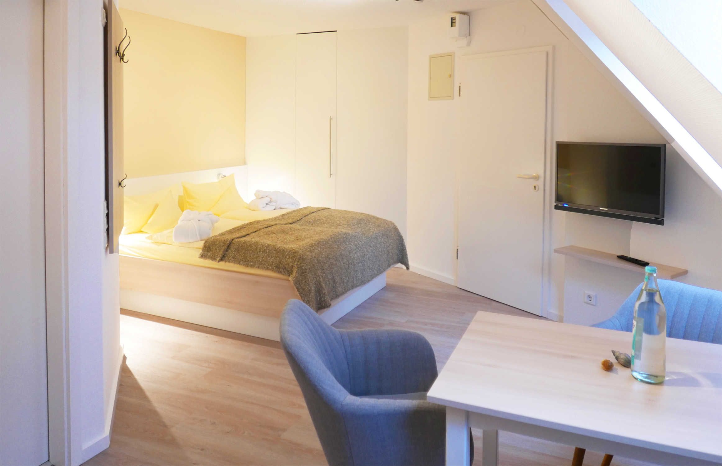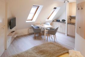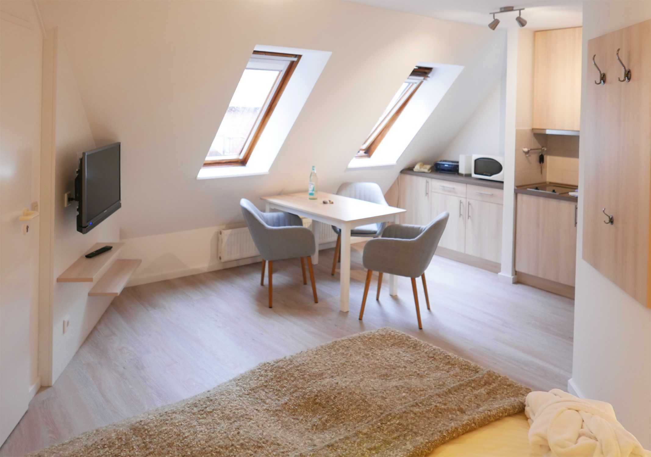 Studio für 2 Personen mit kleiner Küchenpantry in der Inselresidenz Strandburg mitten auf Juist, nur kurze Wege zum Strand und Hafen.