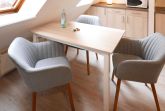 Studio für 2 Personen nach Süden ausgerichtet mit integrierter Kochnische und Duschbad. Es gibt ein Doppelbett(160x200), einen großen Schrank und einen Esstisch mit Stühlen. Flachbildfernseher