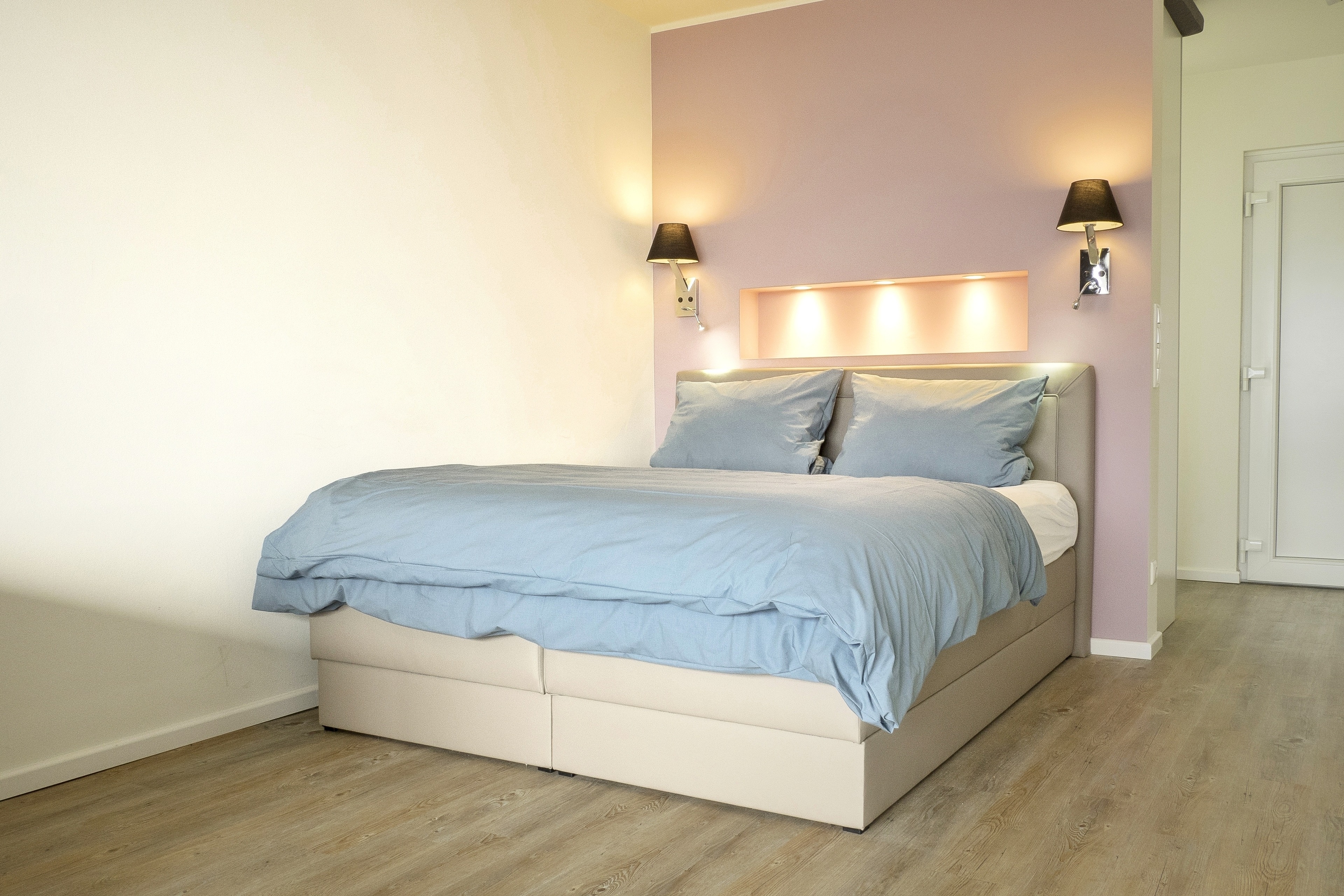 Unsere Ferienwohnung in der Ferienresidenz in Staberdorf liegt direkt am Naturstrand und ist optimal ausgestattet für 2 Erwachsene. Das Boxspringbett bietet nicht nur erholsamen Schlaf, sondern auch Meerblick pur. Auf der windgeschützen Loggia mit Ausrichtung nach Westen genießen Sie traumhafte Sonnenuntergänge und Sonne bis in die Abendstunden. Zur Ferienanlage gehört ein eigener Badesteg, der belebte Südstrand der Insel ist mit dem Fahrrad in 10 Minten erreicht.