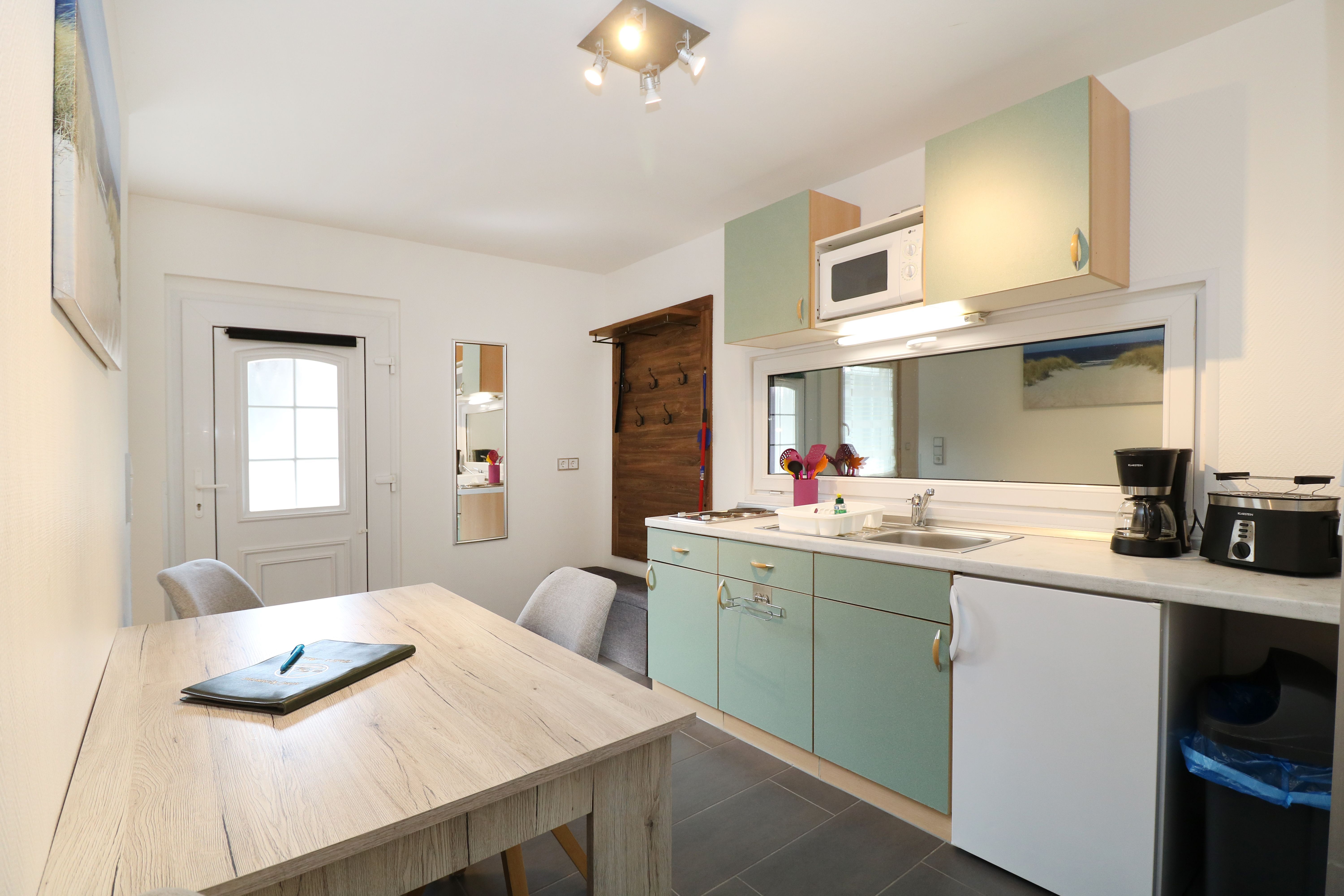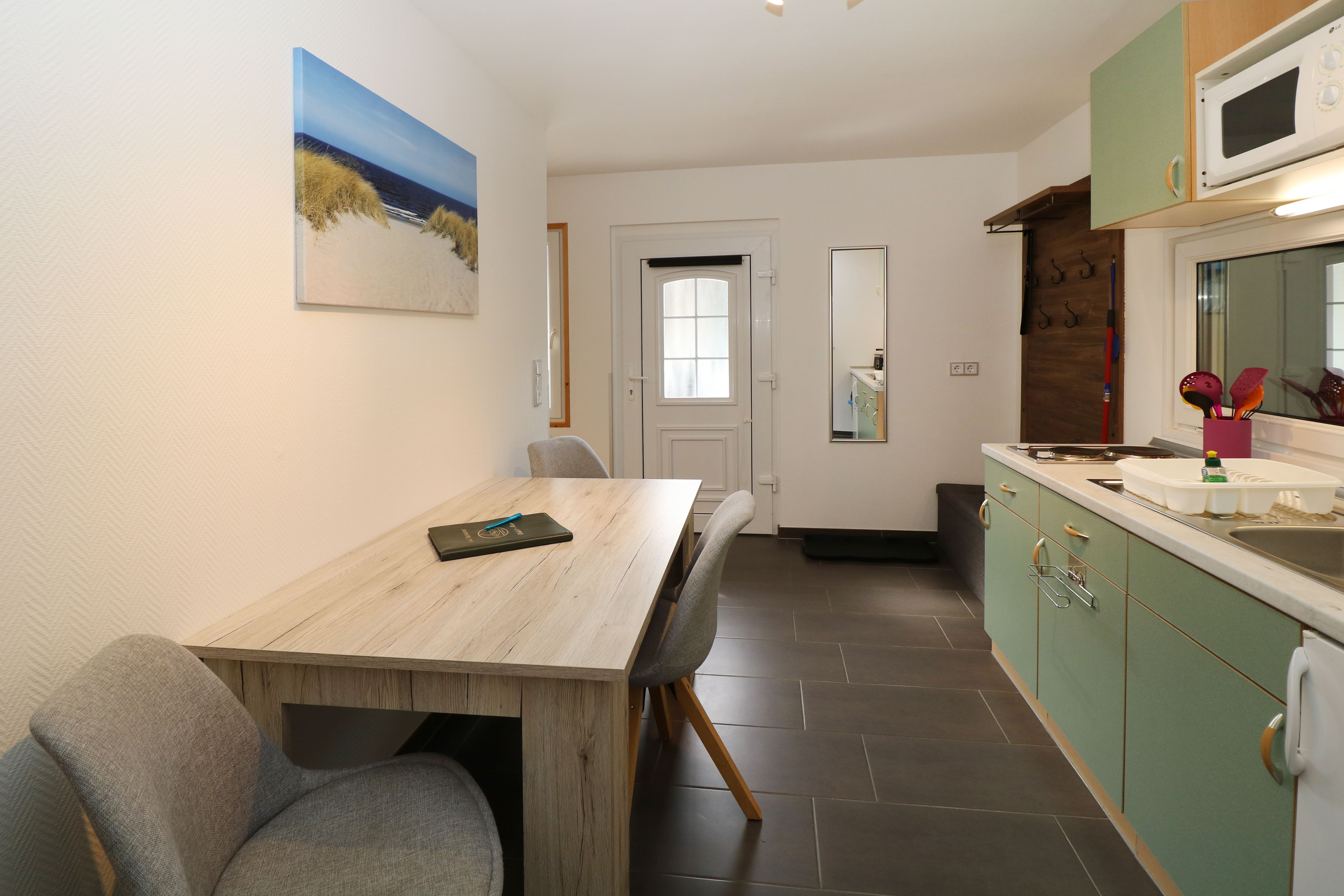 Die Ferienwohnungen sind eine kleine Gruppe von mehreren bungalowähnlichen Wohnungen, die sich einen großen gemeinsamen Terrassenbereich teilen. Die kleinen Ferienwohnungen haben je ein Doppelbett und ein klappbares Schrankbett für eine 3. Person und eine Küche. HIer können Sie mit Ihrer großen Familie, den vielen Freunden oder Vereinskollegen gemeinsam und individuell Urlaub machen.