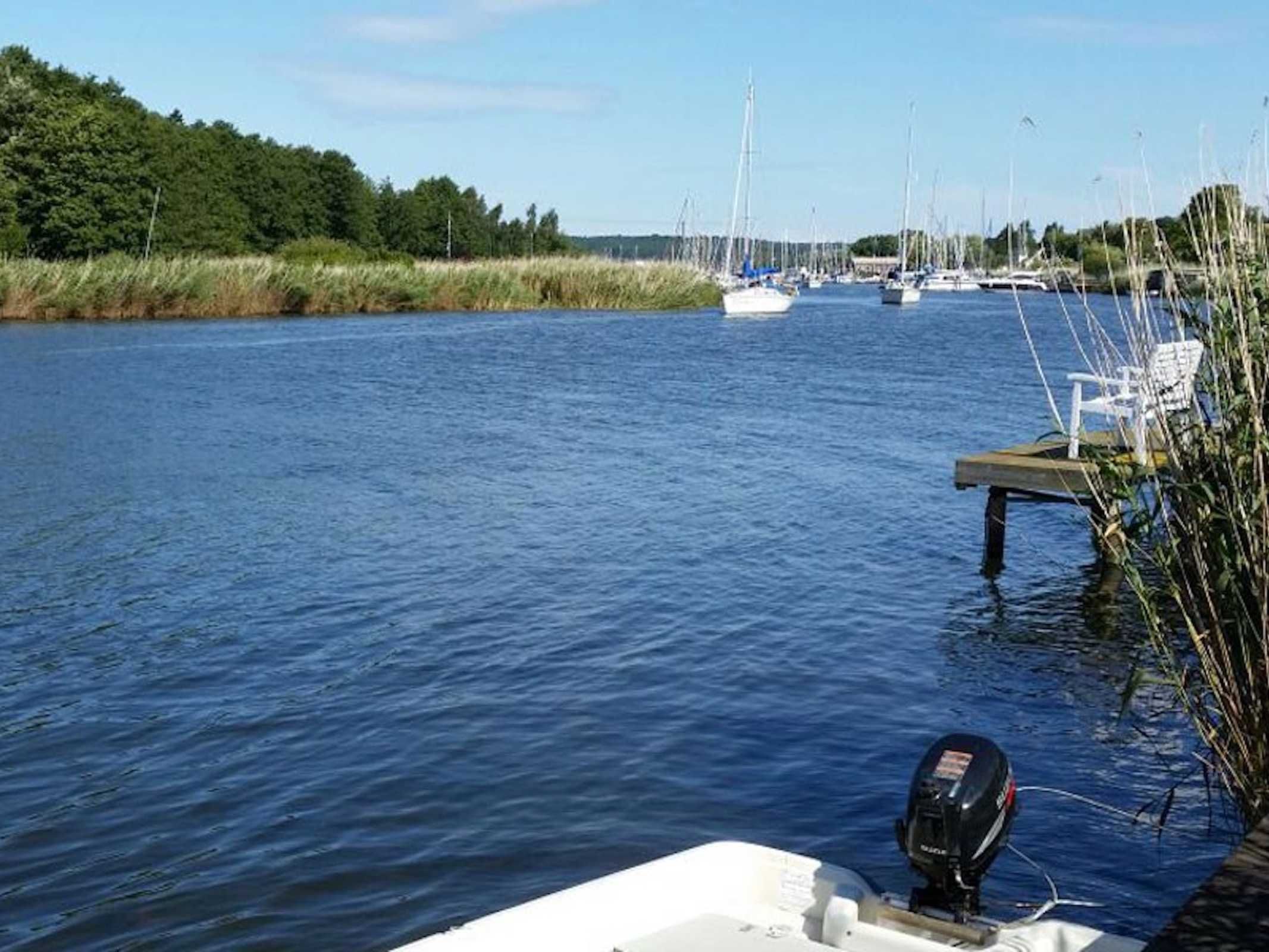 Am Ende des Ortes, 800 m vom Jachthafen entfernt, befindet sich das Ferienhaus „Kapitänsblick mit zwei Ferienwohnungen direkt am Reetgürtel mit eigenem Bootssteg.