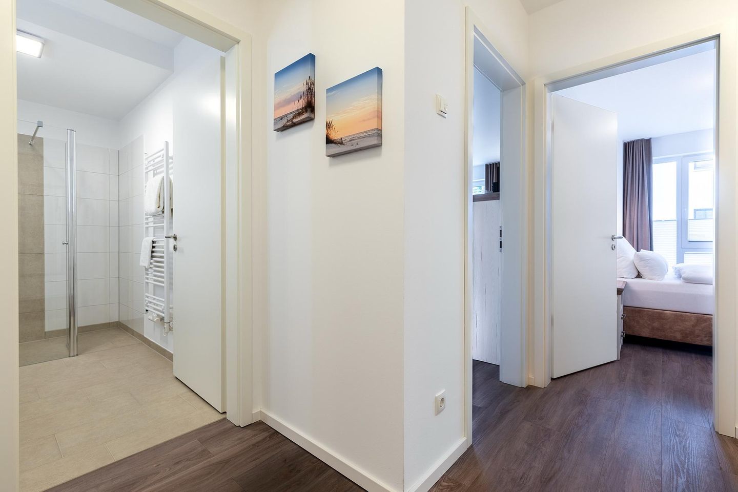 Freut euch auf geschmackvoll eingerichtete Nichtraucherapartments mit bodentiefen Fenstern, Fußbodenheizung und einer voll ausgestatteten, offenen Küche. Alle Wohnungen verfügen über kostenfreies WLAN sowie Balkon, Terrasse oder Dachterrasse. Die Apartments sind aufgeteilt auf fünf Apartmenthäuser mit Gründach.