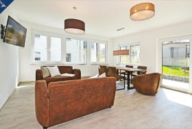Die Villa Doris ist eine moderne Stadtvilla in ruhiger Ortsrandlage mit Anliegerstraße. Zum Ostseestrand gelangen Sie fußläufig in ca. 20 min (1,5 km). Die Ferienanlage ist im Jahr 2018 fertiggestellt worden und besteht aus einem Haupthaus mit 5 exklusiven Ferienwohnungen und drei hochwertigen Ferienbungalows. Von der Auffahrt mit ausreichend Stellplätzen zweigt sich zur rechten Hand der Kinderspielplatz und eine Grillstelle ab. Vor dem Haupthauseingang befindet sich eine Gemeinschaftslounge für ruhige Abendstunden. Zur Sonderausstattung der Villa gehört eine Sauna und ein Waschraum mit Waschmaschine und Trockner.