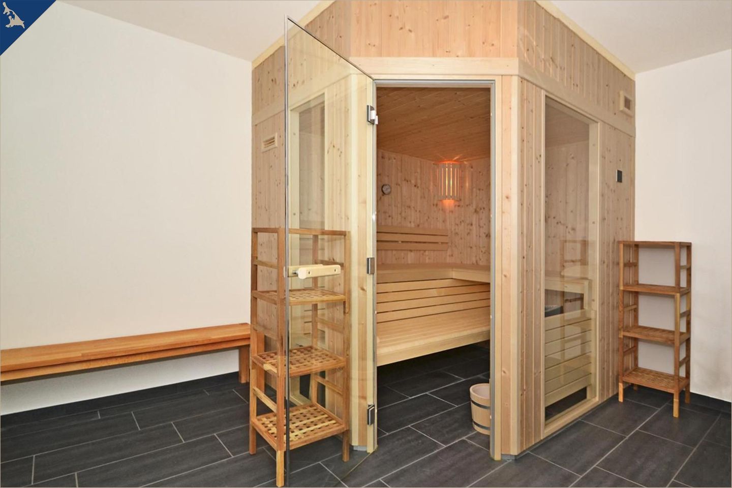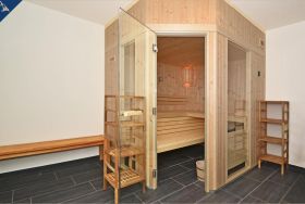 Zur Sonderausstattung der Villa gehört eine Sauna und ein Waschraum mit Waschmaschine und Trockner. Die Waschmaschine und der Trockner können gegen Gebühr genutzt werden (Münzautomat).