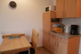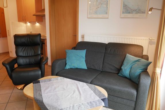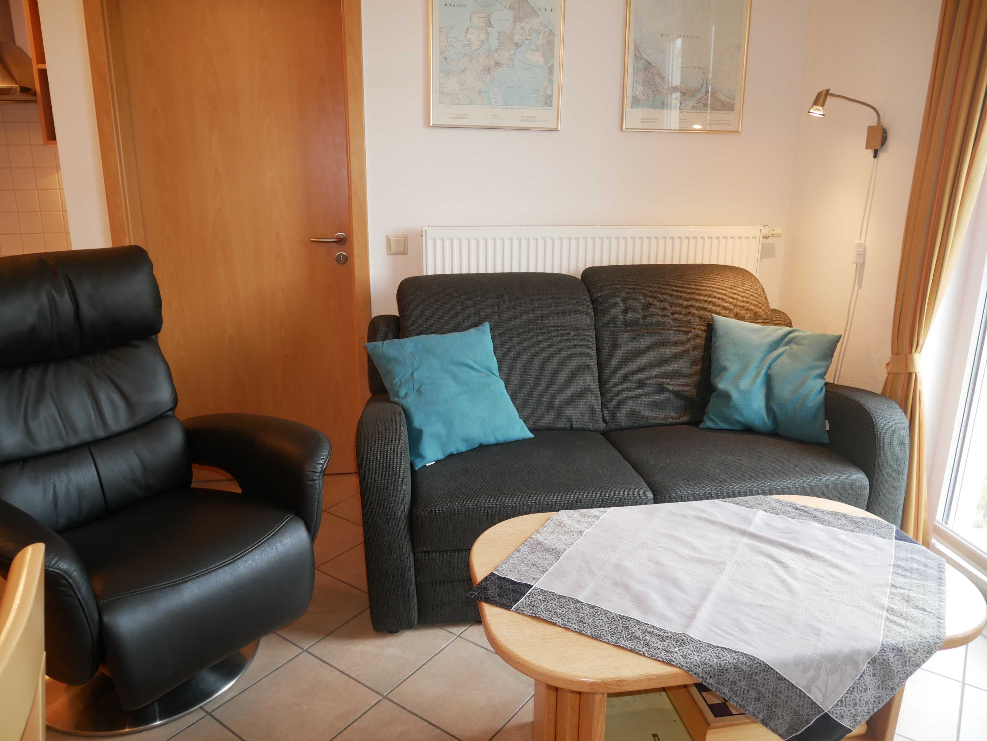 Die komfortable 2-Raum-NICHTRAUCHER Ferienwohnung befindet im 1. Obergeschoss und verfügt über einen Balkon zur Südseite. Das separate Schlafzimmer verfügt über ein Doppelbett mit getrennten Matratzen (Liegefläche pro Pers. 1m x 2,20). Das kombinierte Wohn- und Schlafzimmer ist mit einer gemütlichen Schlafcouch (1,40x2,00m) ausgestattet, sowie mit einem Smart-TV und einem Radio. Die offene Küchenzeile und der Essbereich befinden sich ebenfalls im Wohnbereich. Die Küche ist ausgestattet mit einem 4 Platten-Herd, Backofen, Mikrowelle, Spüle, Kühlschrank und Kaffeemaschine. Das Badezimmer verfügt über eine Dusche, die einen ebenerdigen Einstieg hat und somit auch seniorenfreundlich ist. Die gesamte Wohnung ist mit hellen Bodenfliesen ausgestattet. Bei Anreise liegt einer Erstausstattung Seife, Toilettenpapier, Küchenrolle und ein Geschirrhandtuch für Sie bereit.