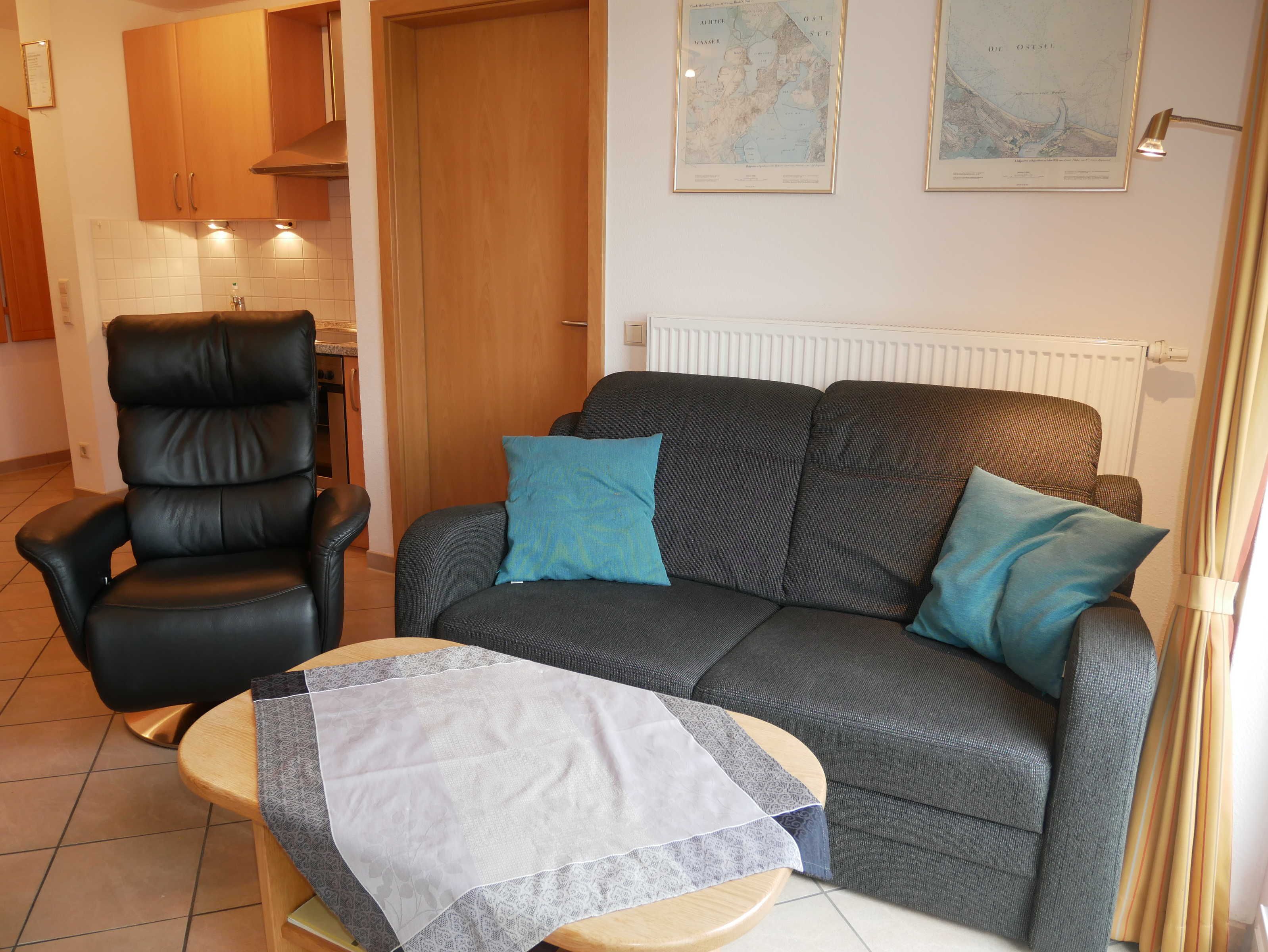 Die komfortable, hochwertig und geschmackvoll eingerichtete Ferienwohnung befindet sich in einem modernen Appartementhaus in der Nähe des Schloonsee, nur ca. 200m vom feinsandigen Ostseestrand entfernt. Der nächste Supermarkt ist in 10 Gehminuten zu erreichen. Die Wohnung teilt sich auf in ein Wohnzimmer mit offener Küche, Schlafzimmer und Badezimmer mit Dusche. Die Ferienwohnung verfügt über einen Balkon in Richtung Schloonsee.