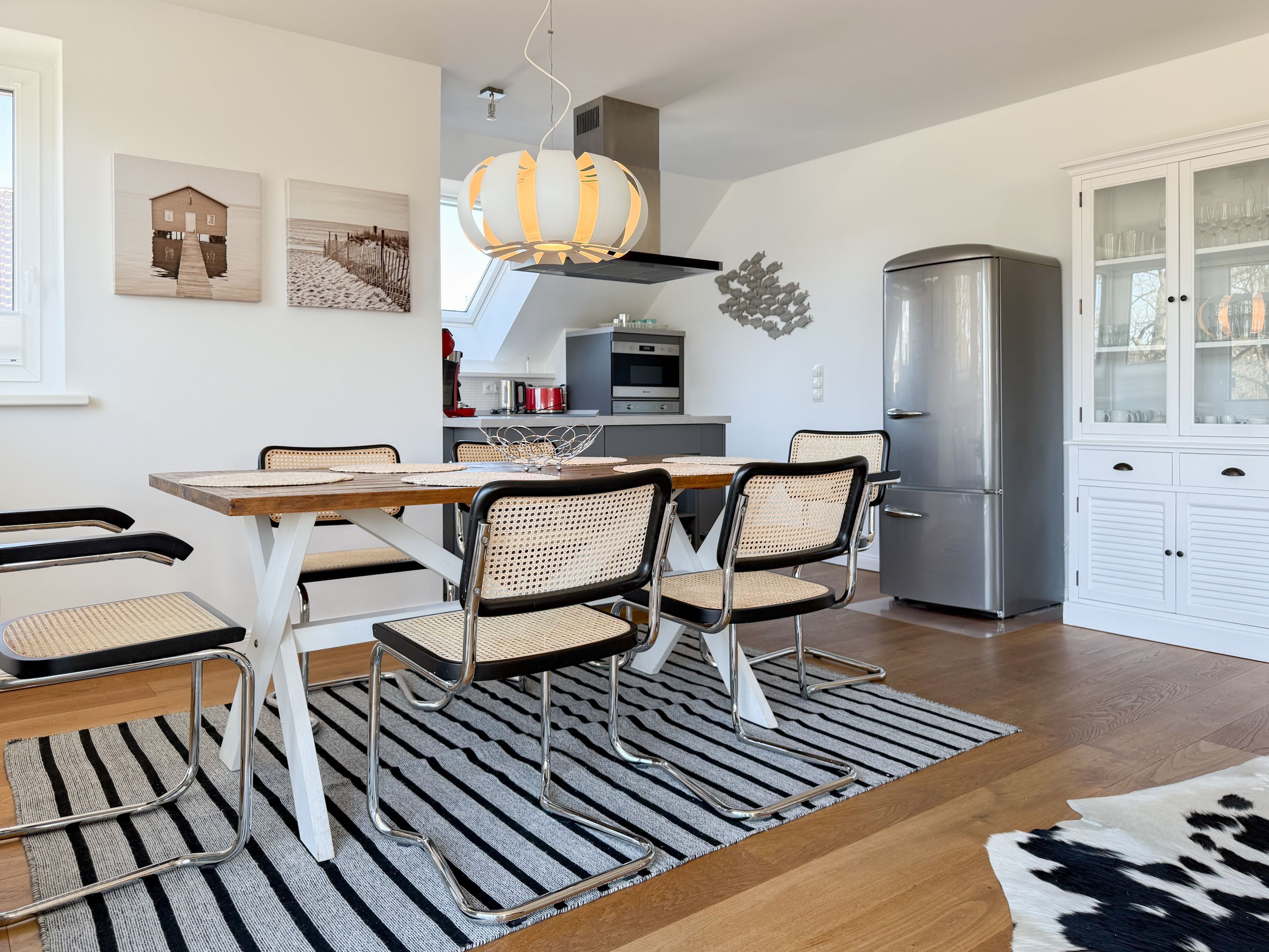 Diese traumhafte Penthousewohnung liegt in bester Lage am urigen Yacht- und Fischereihafen von Niendorf nur einen Katzensprung vom Strand entfernt. Hier ist immer etwas los: Fischkutter, Segelboote und das maritime Treiben sorgen für eine einzigartige Atmosphäre. Frische Brötchen bekommst du beim Bäcker um die Ecke, fangfrischen Fisch direkt vom Kutter, und in der Umgebung laden zahlreiche Restaurants, Cafés sowie die Niendorfer Segelschule, ein Fahrradverleih und ein Abenteuerspielplatz zum Verweilen ein.