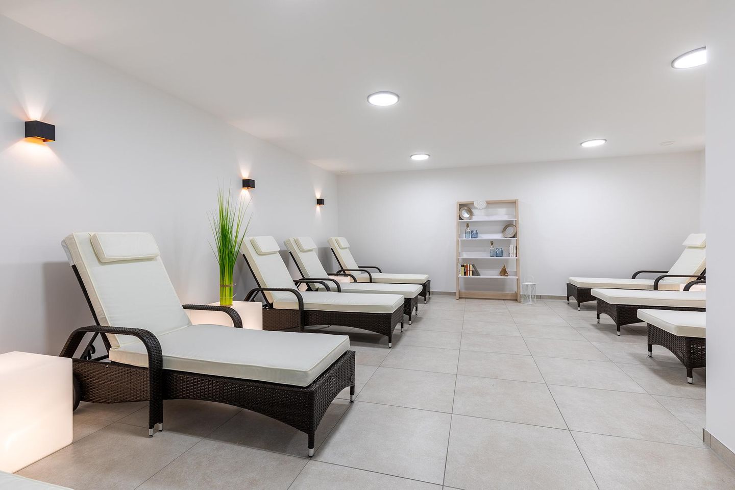 Auf Wunsch nutzt ihr die attraktiven Annehmlichkeiten der Ferienanlage – in Haus 5 steht euch ein Saunabereich mit finnischer Sauna, Biosauna und Ruheraum zur Verfügung. Gegen eine kleine Leihgebühr sind Bademäntel und Saunatücher an der Rezeption erhältlich.