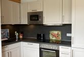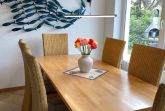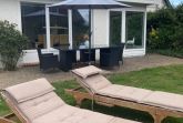 Die 4 Zimmer mit einem Dusch- und einem Vollbad sowie komplett eingerichteter moderner Küche und Wintergarten befinden sich auf einer Ebene im Erdgeschoss. Das mit einer Gaszentralheizung ausgestattete Einzelhaus ist für 5-7 Personen modern eingerichtet. Alle Räume sind mit Laminat oder schönen Fliesen versehen. Im Wohnraum finden Sie eine gemütliche Sitzgruppe, einen Kaminofen mit Sichtfenster, Sat-TV mit DVD/CD-Player. In zwei von den drei Schlafräumen befinden sich jeweils Doppelbetten, (1 mal 1,60 m x 2,00 m; 1 mal 1,80 m x 2,00 m groß). Im kleinen Kinderzimmer steht ein Etagenbett (0,90 m x 1,90 m), eine zusätzliche Schlafmöglichkeit durch ein Schlafsofa (ca. 1,40 m x 2,00 m) befindet sich im Wintergarten. Ein Kinderreisebettchen und ein Kinderstuhl sind vorhanden. Die komfortable helle Küche ist dem Wohnraum angegliedert und verfügt über einen großen Essplatz. Die Einbauküche ist mit allem, was das Chefkochherz begehrt, ausgestattet. Natürlich finden Sie auch hier genug Platz zum Verstauen Ihrer Vorräte. Ein Holzkohlegrill und geschmackvolle Polyrattanmöbel und Sonnenliegen für die Terrasse und den Garten runden die Ausstattung ab. Das Haus verfügt über kostenlosen Internetzugang über WLAN.
