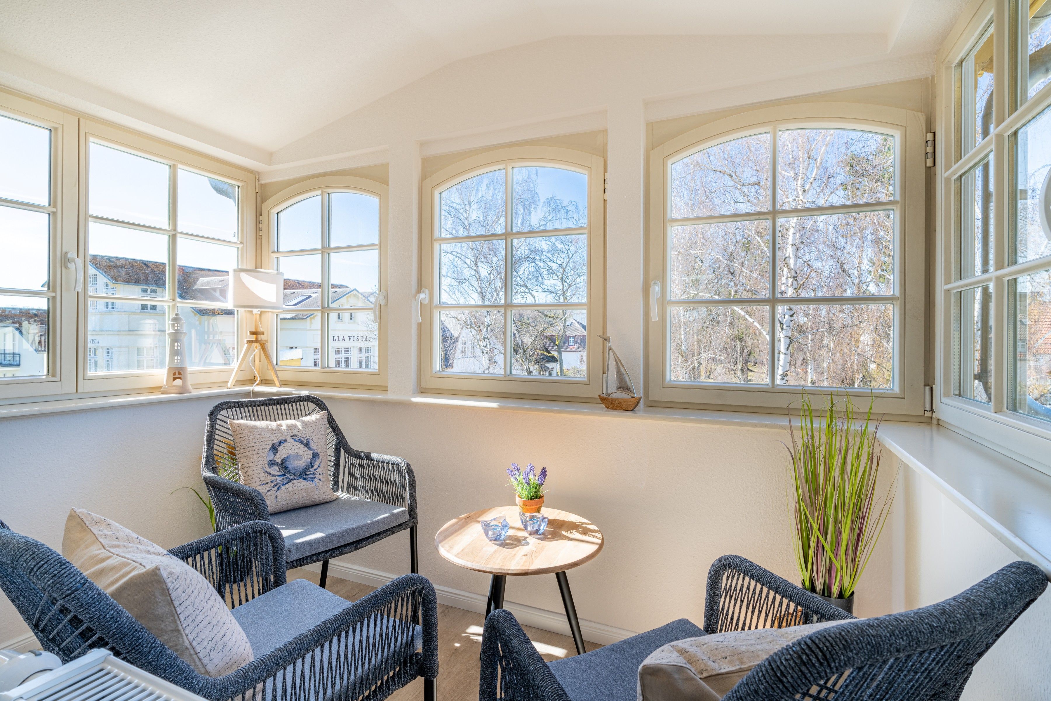 Diese Ferienwohnung ist mit Liebe zum Detail ein gerichtet und bietet mit den für Bäderarchitektur typischen Loggien einen tollen Rückzugsort zum Entschleunigen und Wohlfühlen.