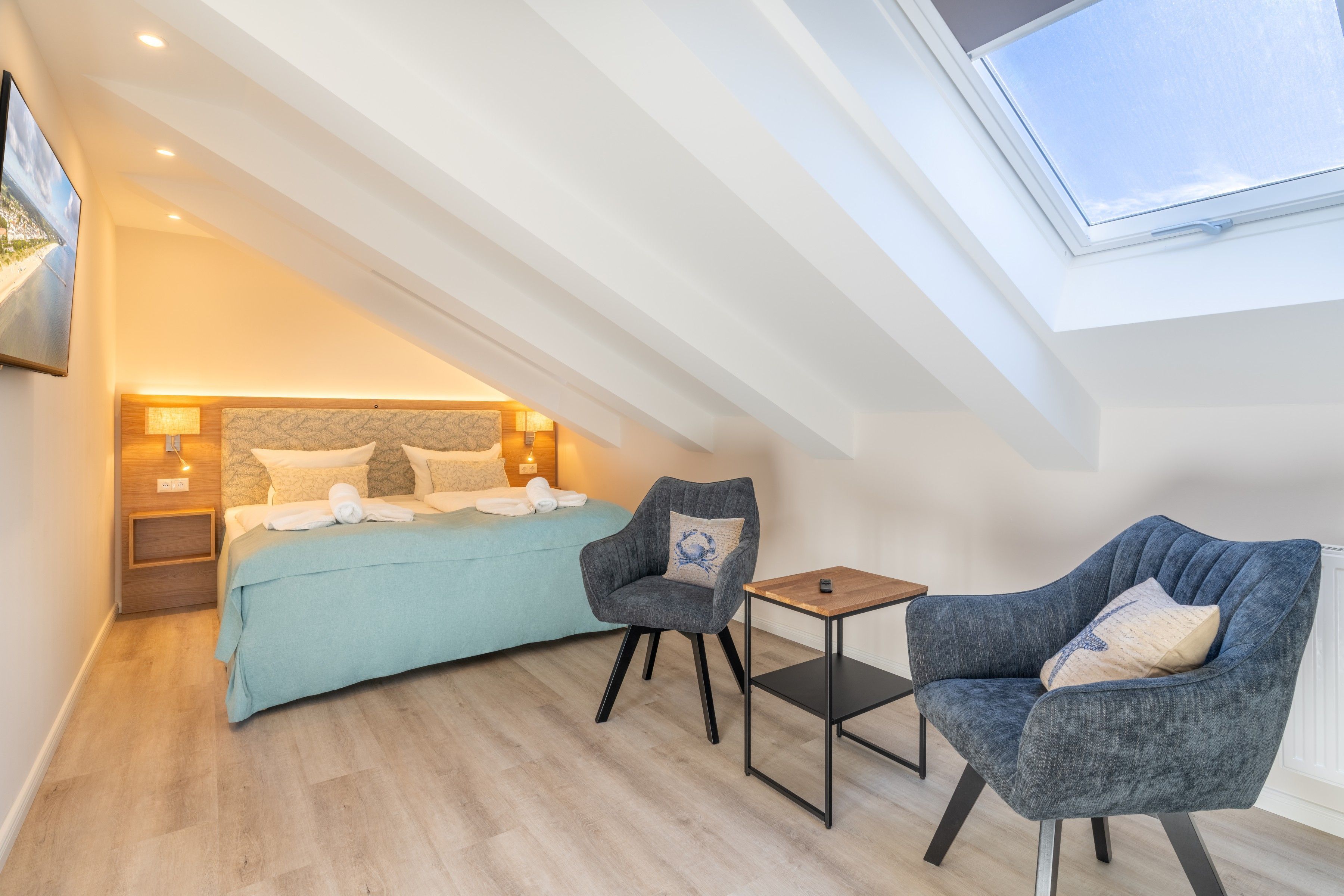 Im Herzen des Seebades Ahlbeck befindet sich die Villa Albus, eine der schönen und sanierten Bäderstilvillen. Keine 200 m trennen das Ensemble aus Villa und Hintergebäude von der zum Flanieren einladenden Promenade und dem feinsandigen weißen Ostseestrand.Die neu renovierte Ferienwohnung befindet sich im Dachgeschoss.