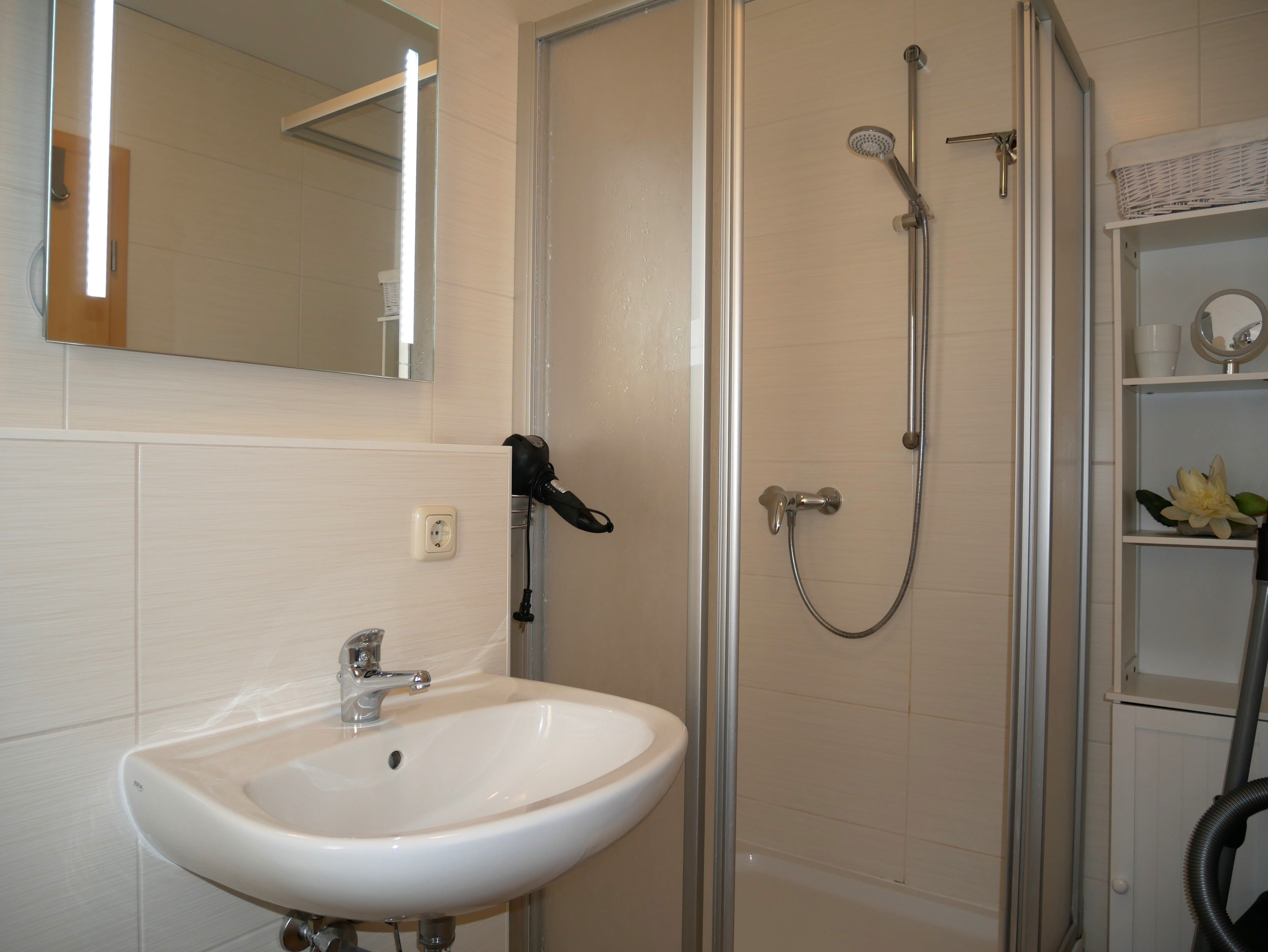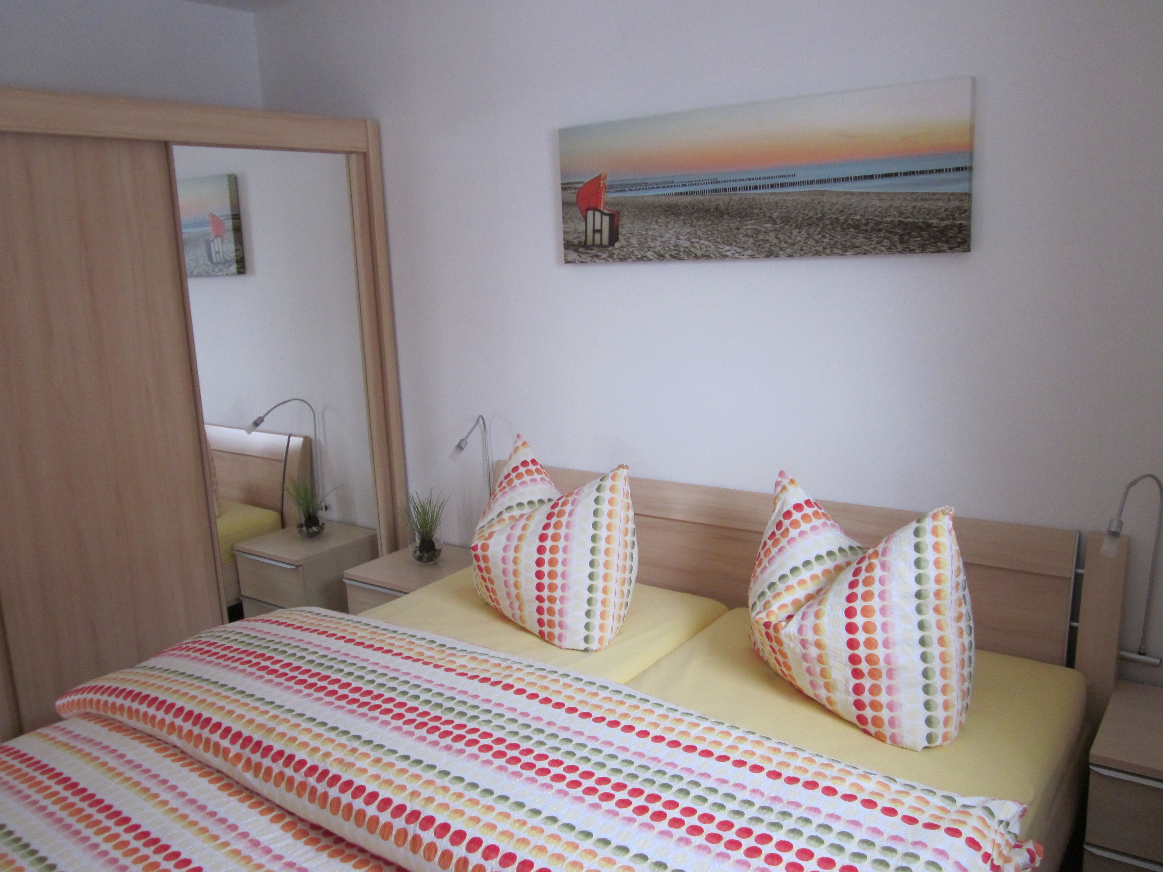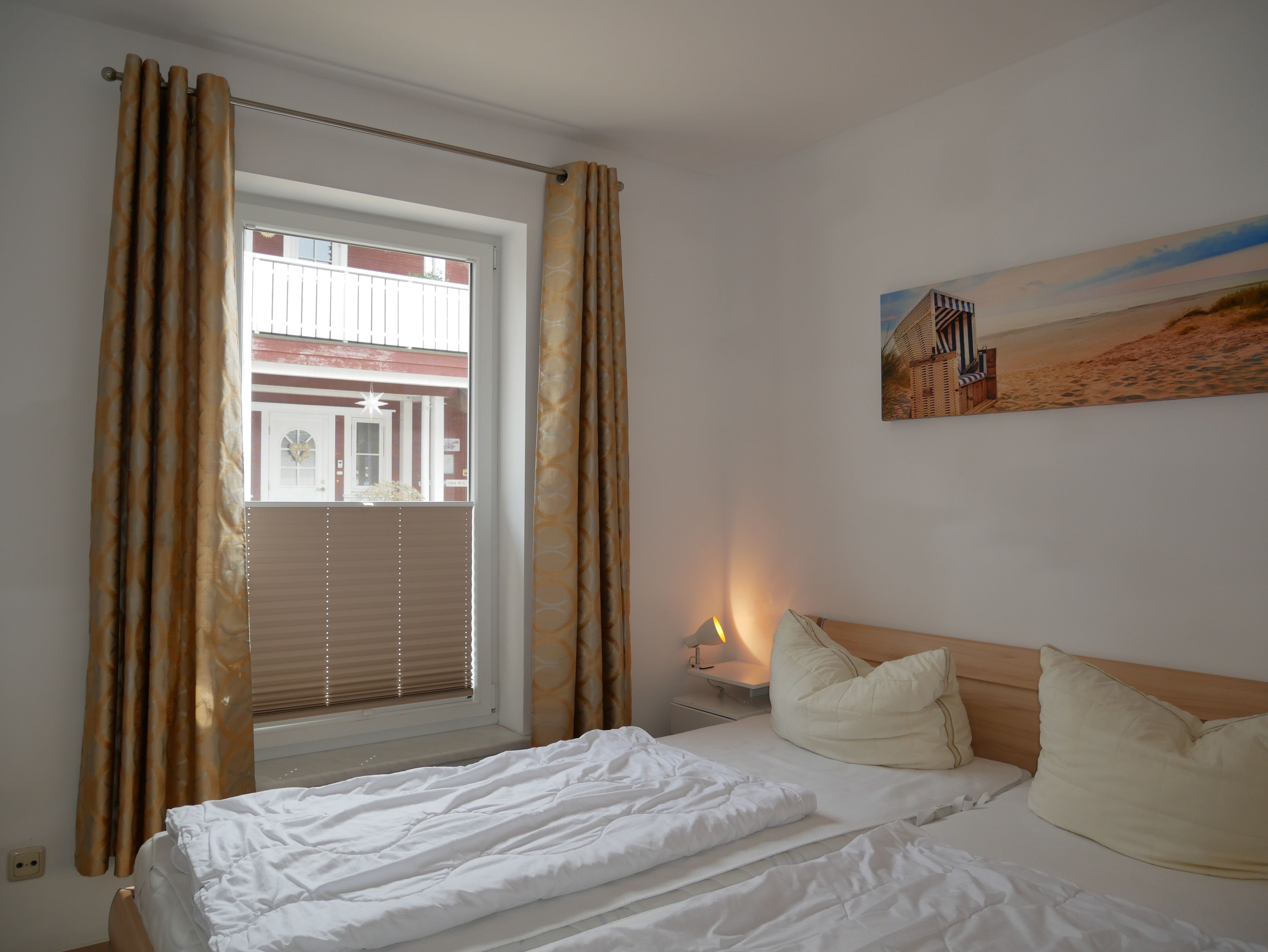 Schlafzimmer ist mit einen Doppelbett (200x180 cm) und Kleiderschrank und das Badezimmer ist mit Dusche und WC ausgestattet.