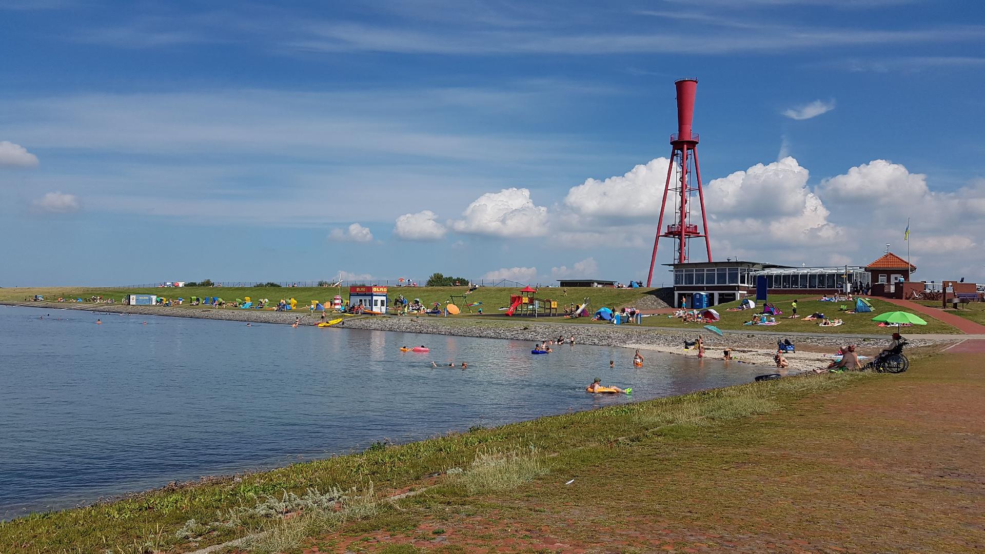 Zum Strandbad Eckwarderhörne mit der Strandhalle, Leuchtturm, Fähranleger und Ausgangspunkt für geführte Wattwanderungen sind es etwa 800 m.