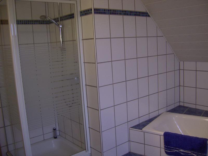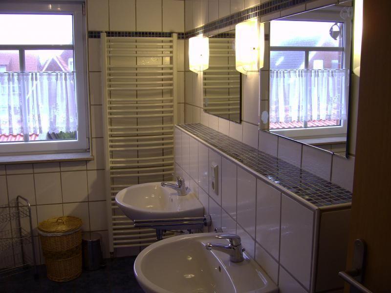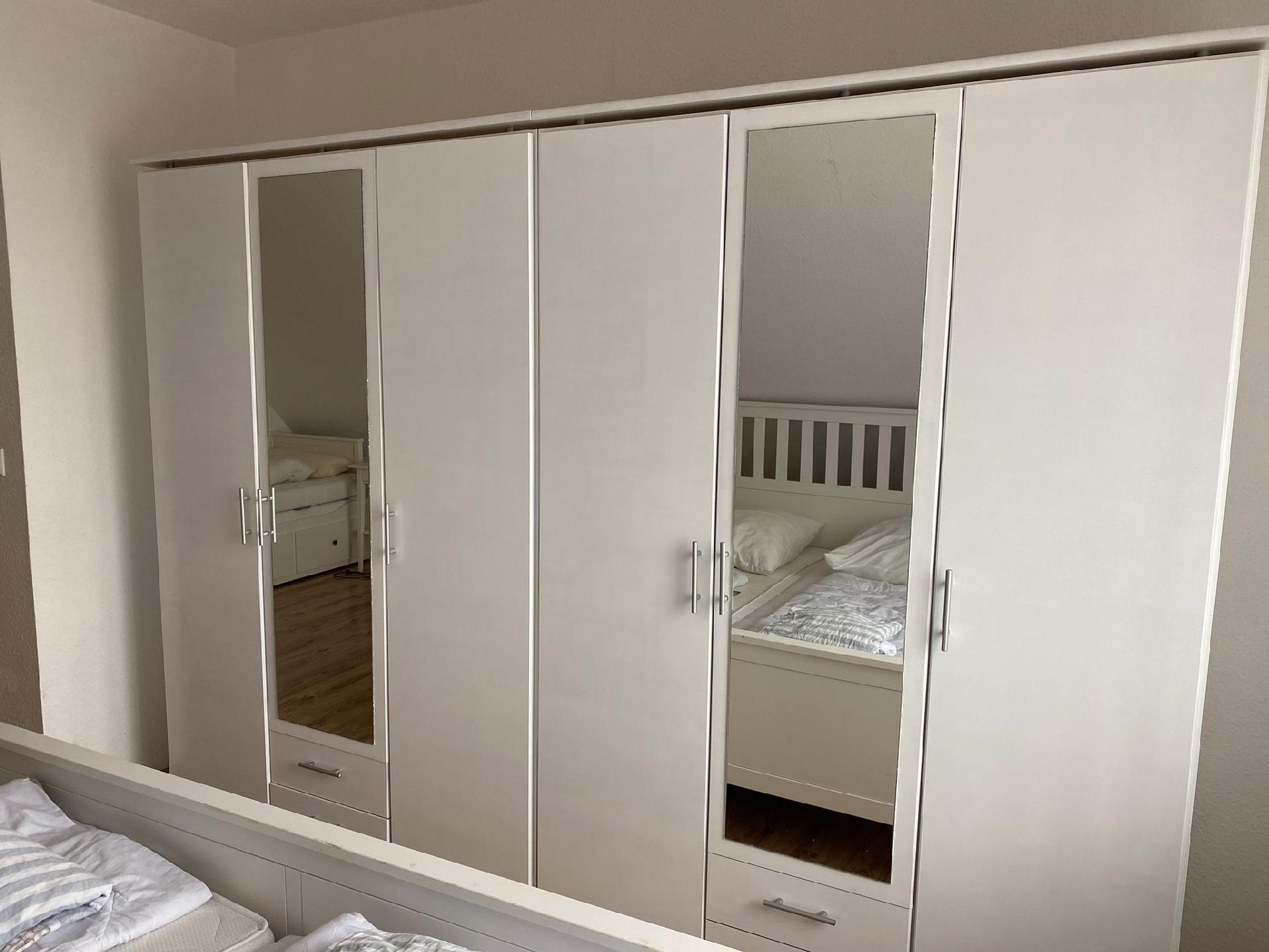 Im Erdgeschoss sind ein Badezimmer mit Dusche/WC, ein Schlafzimmer mit Doppelbett und ein Raum mit Waschmaschine, Trockner und Gefrierschrank vorhanden. Im OG befinden sich weitere 3 Schlafzimmer mit Doppelbetten. Bei einem dieser Schlafzimmer befindet sich neben dem Doppelbett ein IKEA Brimnes Ausziehbett für maximal 2 Personen. ein weiteres Bad mit Badewanne, Dusche, WC und 2 Waschbecken.