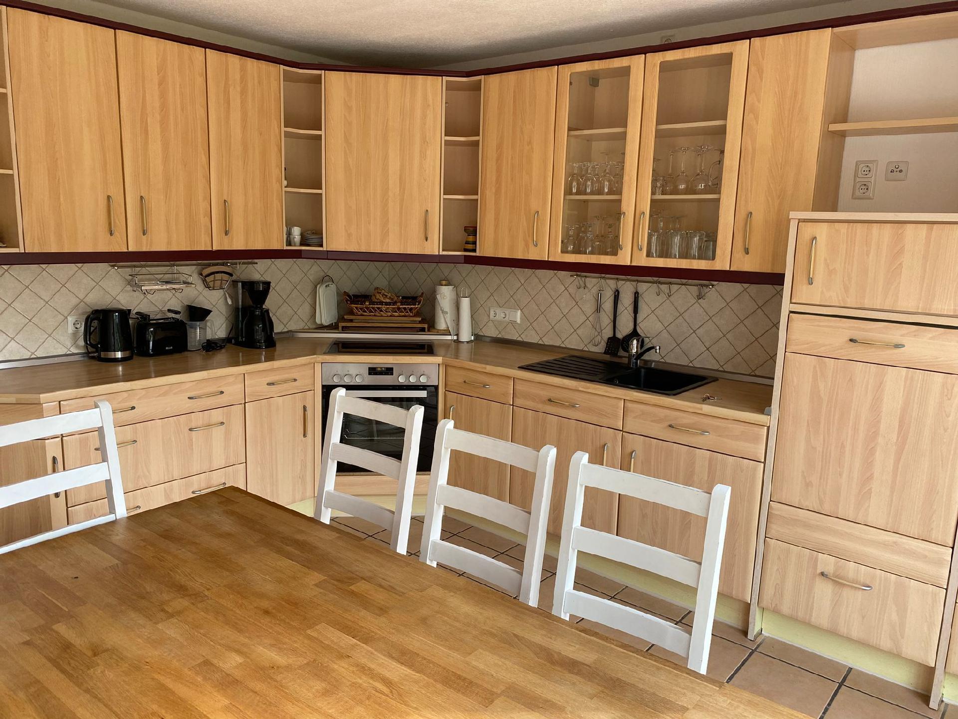 Das schöne Ferienhaus verfügt über 4 Schlafzimmer und 3 Bäder. Die große Küche mit Essbereich ist komplett eingerichtet mit Mikrowelle, Backofen, Spülmaschine und Kaffeemaschine. Das gemütliche Wohnzimmer mit Kaminofen ist ideal für gemütliche Stunden.