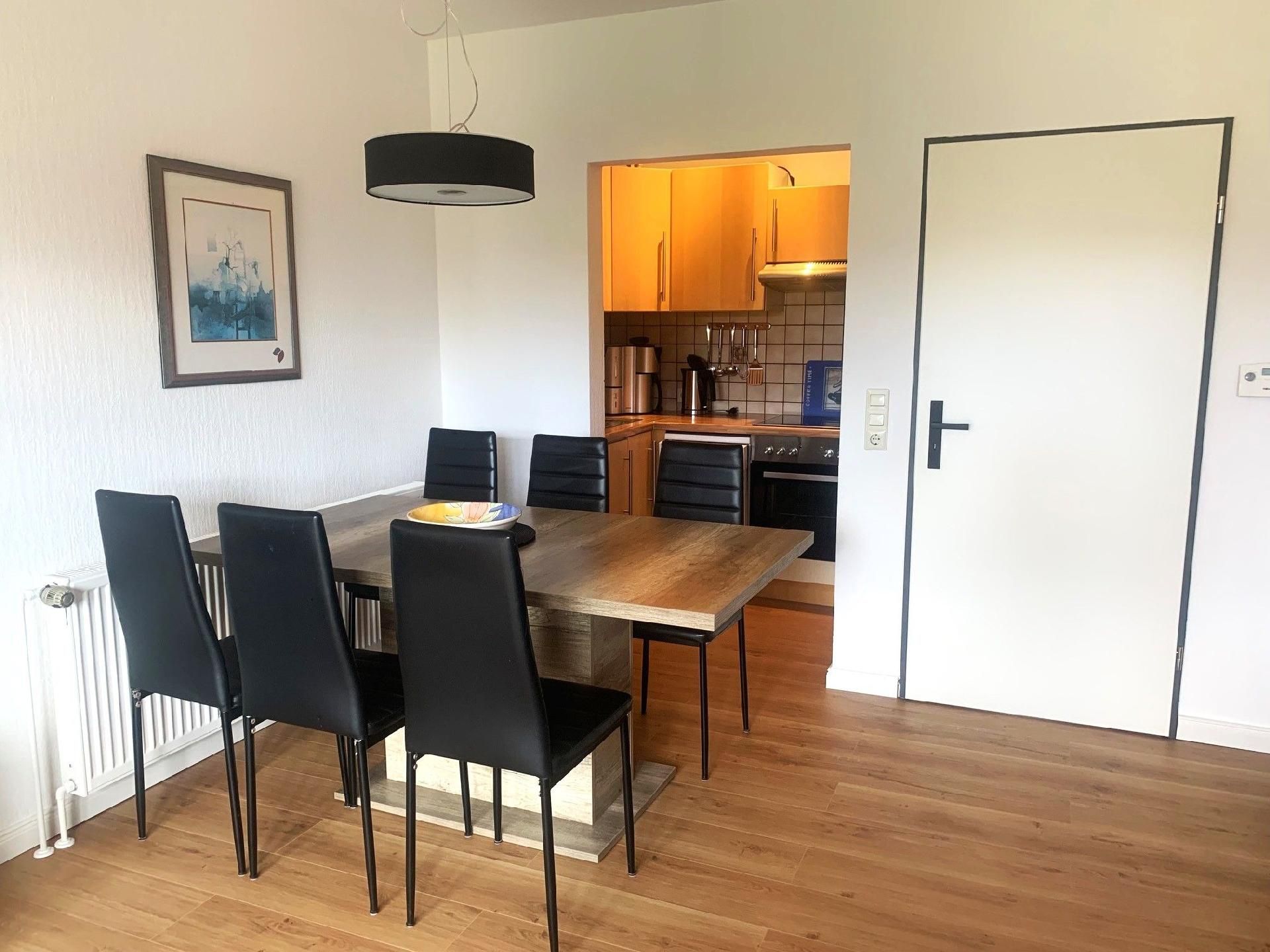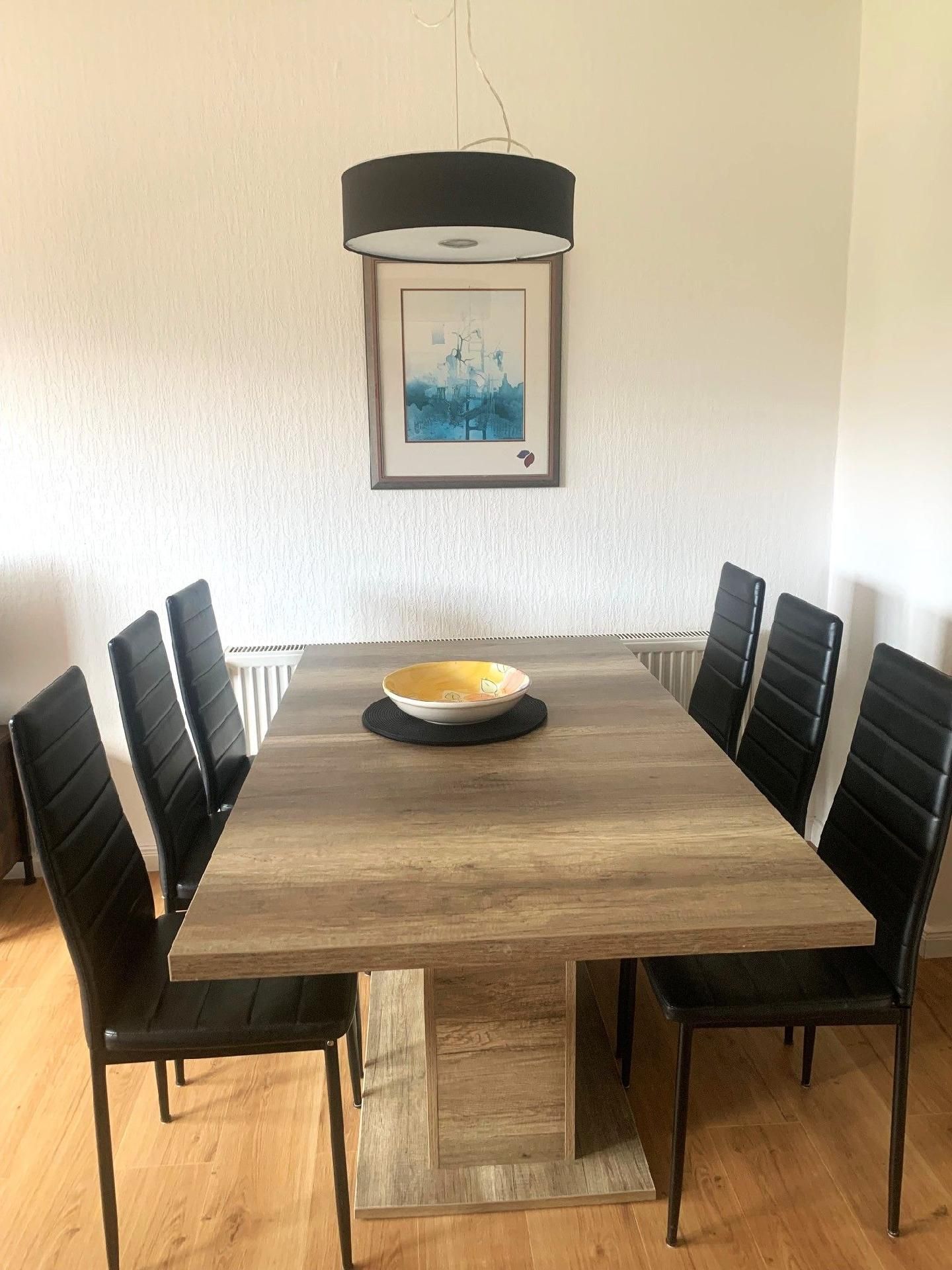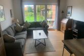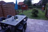 Vom Wohnzimmer gelangen Sie auf die Terrasse und in den Garten. Es sind Gartenmöbel für sechs Personen vorhanden. Der Garten ist eingezäunt. Der kostenlose Parkplatz befindet sich vor der Tür am Haus.