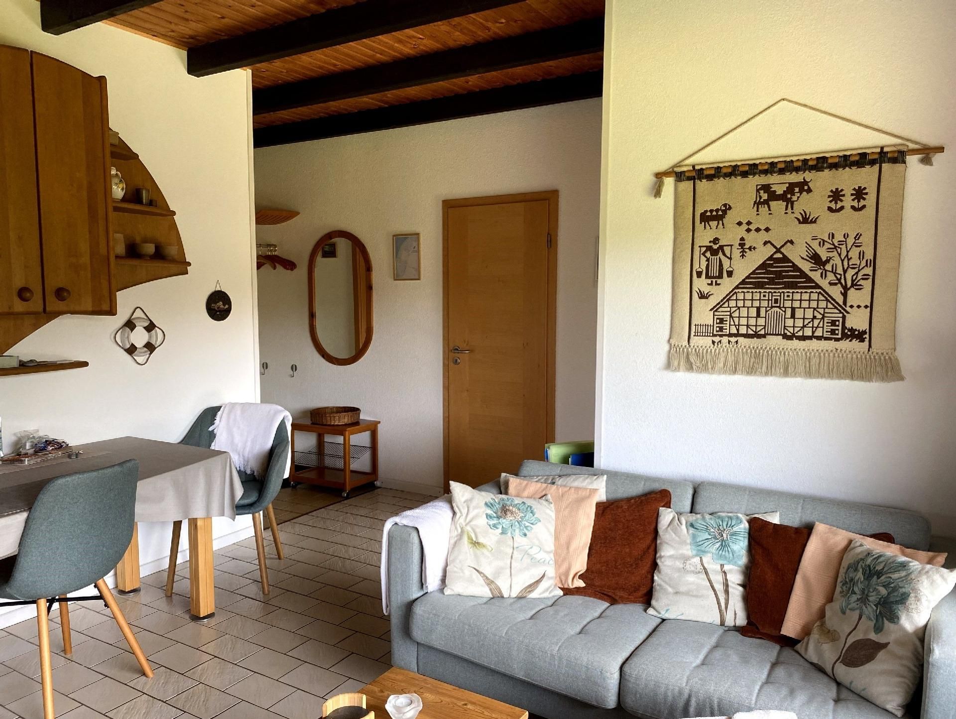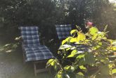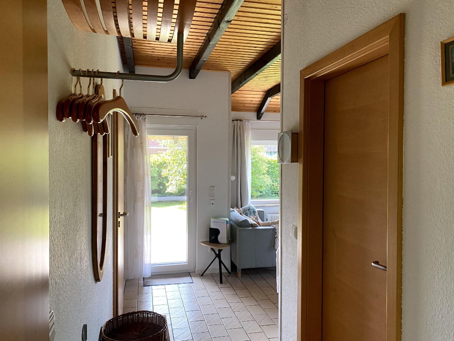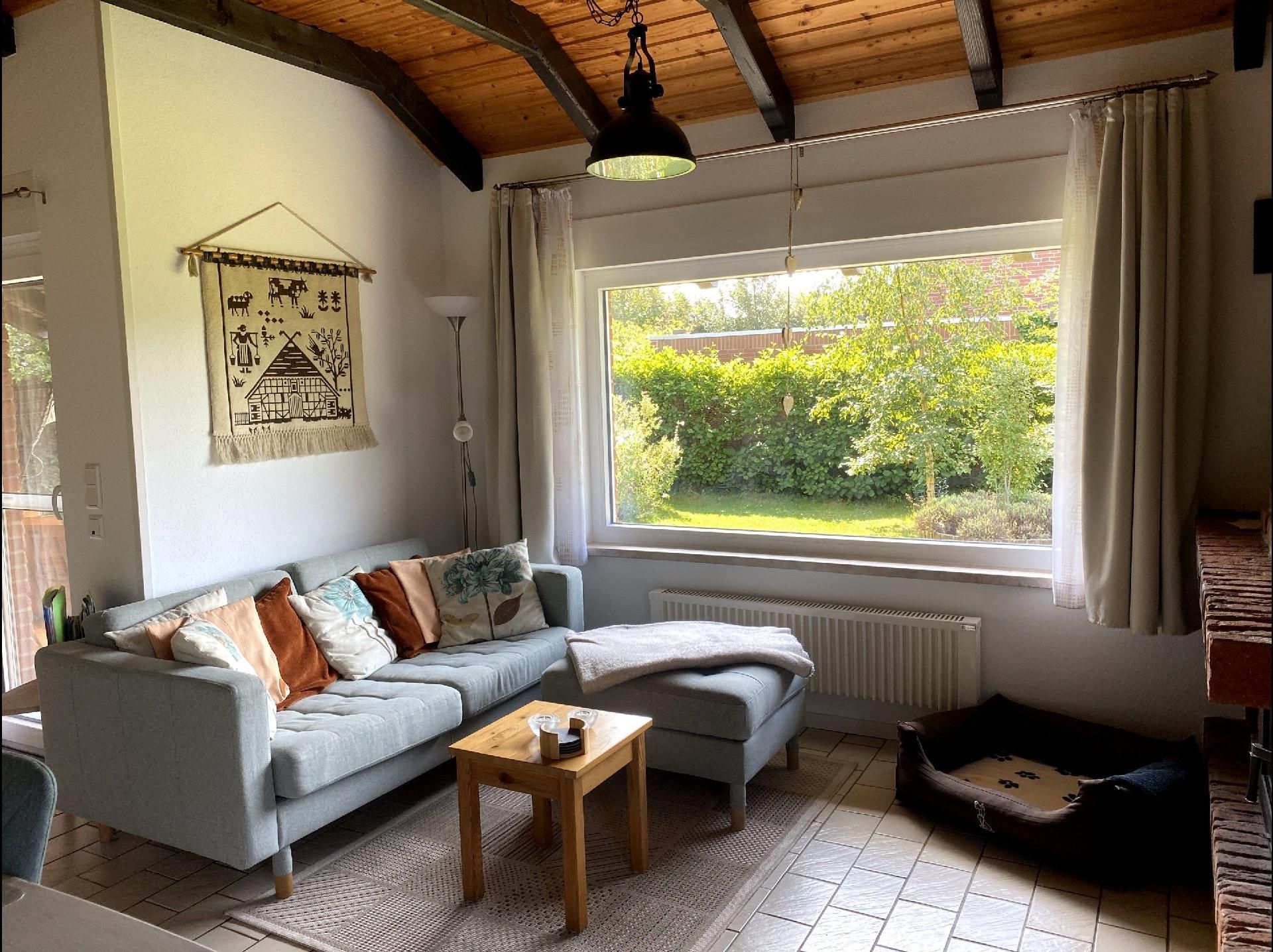 Der Außenbereich lädt mit seiner südausgerichteten Terrasse, einem neu hinzugekommenen Strandkorb (ab 2023) und diversen Gartenmöbeln zum Verweilen im Freien ein. Das Grundstück am Ende einer ruhigen Sackgasse umfasst auch ein Gartenhaus für Fahrräder – ideal für Gäste, die Entspannung in der Natur suchen.