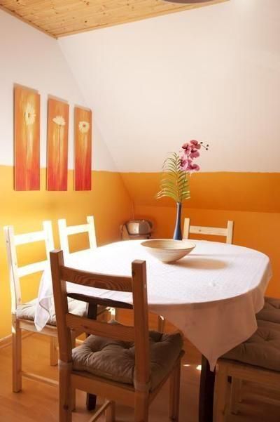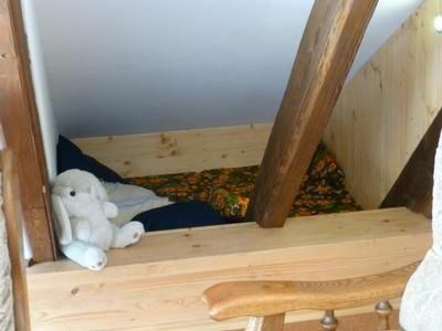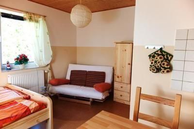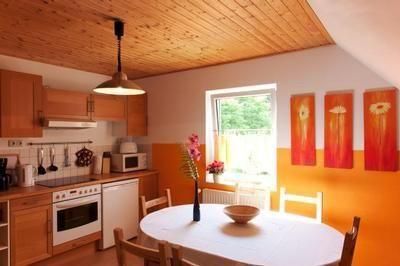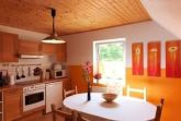 Die Innenausstattung unserer Ferienwohnung, die sich über die 1. Etage und das ausgebaute Dachgeschoss erstreckt, bietet alles, was Sie für einen komfortablen Aufenthalt benötigen. Ein separater Eingang führt Sie in die Wohnung, wo Sie zwei geschmackvoll eingerichtete Schlafzimmer, sowohl mit Doppelbetten als auch zusätzlichen Einzelbetten, finden. Die Wohnräume sind mit modernen Annehmlichkeiten wie Sat-/TV-Geräten, einer Miniküche im ersten Schlafzimmer und einer umfassend ausgestatteten Hauptküche mit sämtlichen Geräten versehen, die für eine selbstständige Versorgung benötigt werden. Zusätzliche Gemütlichkeit verleihen die rustikale Wohnbereichseinrichtung im Dachgeschoss sowie die Spiel- und Kuschelecke für die kleineren Gäste.