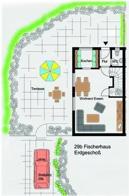 Sonstiges: Anglerfreundlich; Bodenheizung; Haustier erlaubt: max. 1; Kinder-/ Babybett; Staubsauger; Wäschetrockner gemeinschaftliche Nutzung; W-Lan