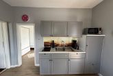 • Küchenausstattung: Ceranfeld (4 Kochzonen), Kaffeemaschine, Toaster, Eierkocher, Mikrowelle, Geschirr, Töpfe, (Hinweis: kein Backofen).