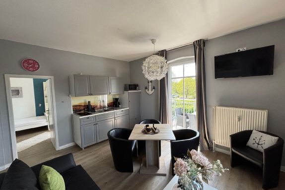 Unsere Ferienwohnung 7 zeigt, wie man mit minimalem Raum maximalen Komfort und Zufriedenheit erleben kann. Unsere liebevoll eingerichtete Ferienwohnung, die sich im Erdgeschoss befindet, bietet auf ca. 35 m² alles, was Sie für einen erholsamen Aufenthalt benötigen. Sie verfügt über einen Balkon – perfekt für ein entspanntes Frühstück an der frischen Meeresluft.