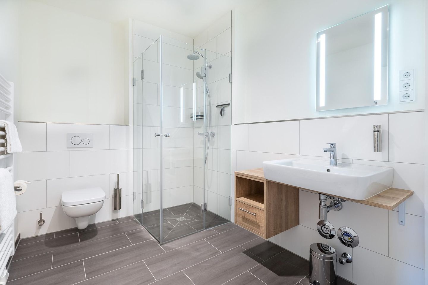 Die Premiumapartments verfügen über eine stilvolle Inneneinrichtung und Ausstattung, Fußbodenheizung, Sonnenschutzverglasung und kostenfreies WLAN. Das harmonische Farbkonzept in warmen Naturtönen vermittelt Wohlgefühl und Gemütlichkeit.