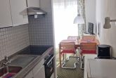 In der Küche befindet sich ein Herd mit Backofen und 4 Platten, so wie ein Kühlschrank mit Tk-Fach.