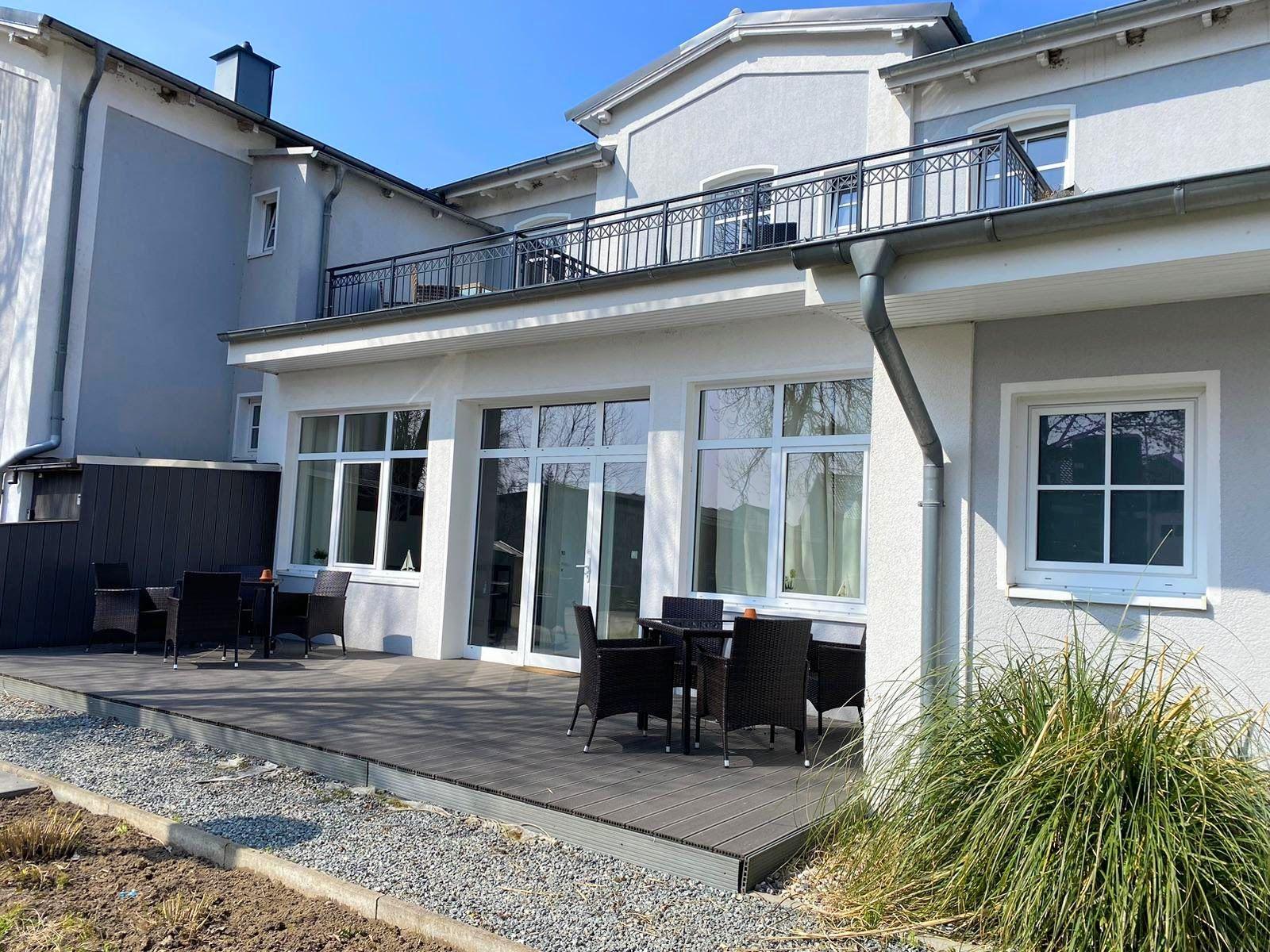 Das HausOstseewelle liegt 150m vom Strand entfernt. Die Ferienwohnung 12 liegt im Erdgeschoss. Zur Wohnung gehört eine Terrasse mit Gartenmöbeln.