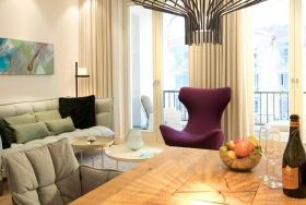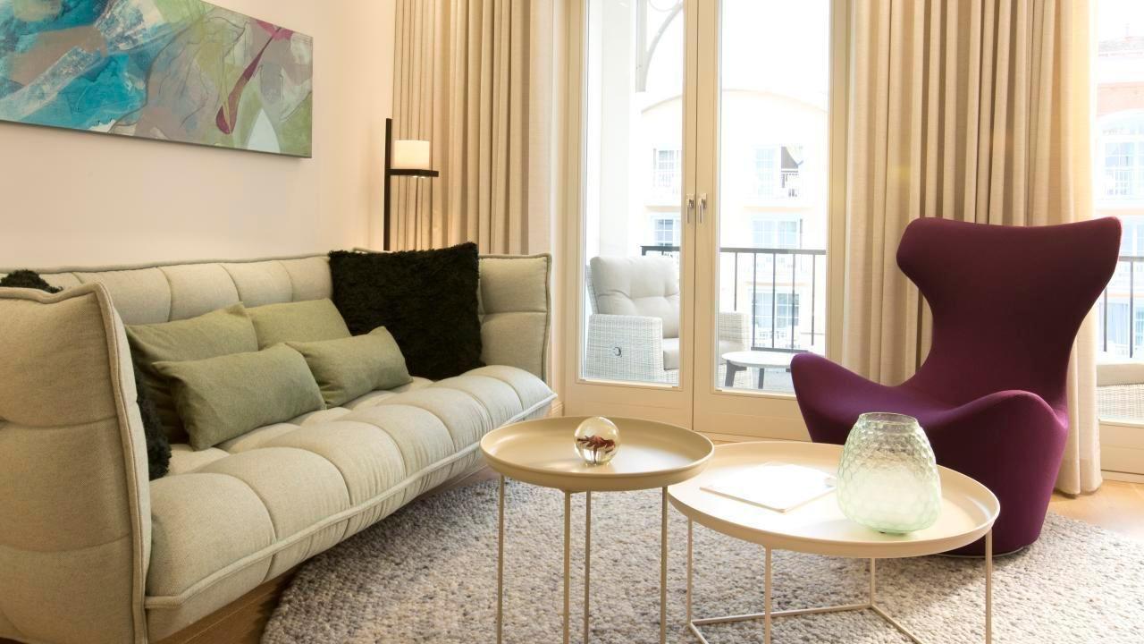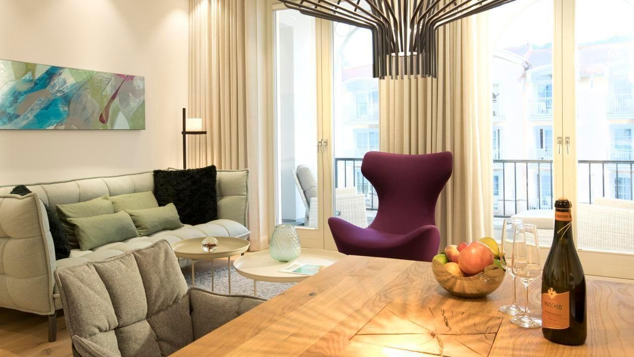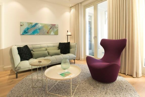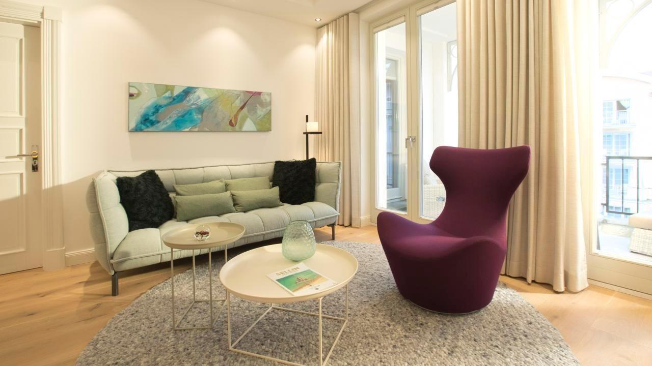 Das Sofa mit Blick auf den Loeve Flachbildschirmfernseher ist groß und gemütlich und lädt zum veweilen ein. Für die gemütliche Stimmung am Abend sorgt die Multi-Room Sonos Anlage mit der man sich per Bluetooth verbinden kann.