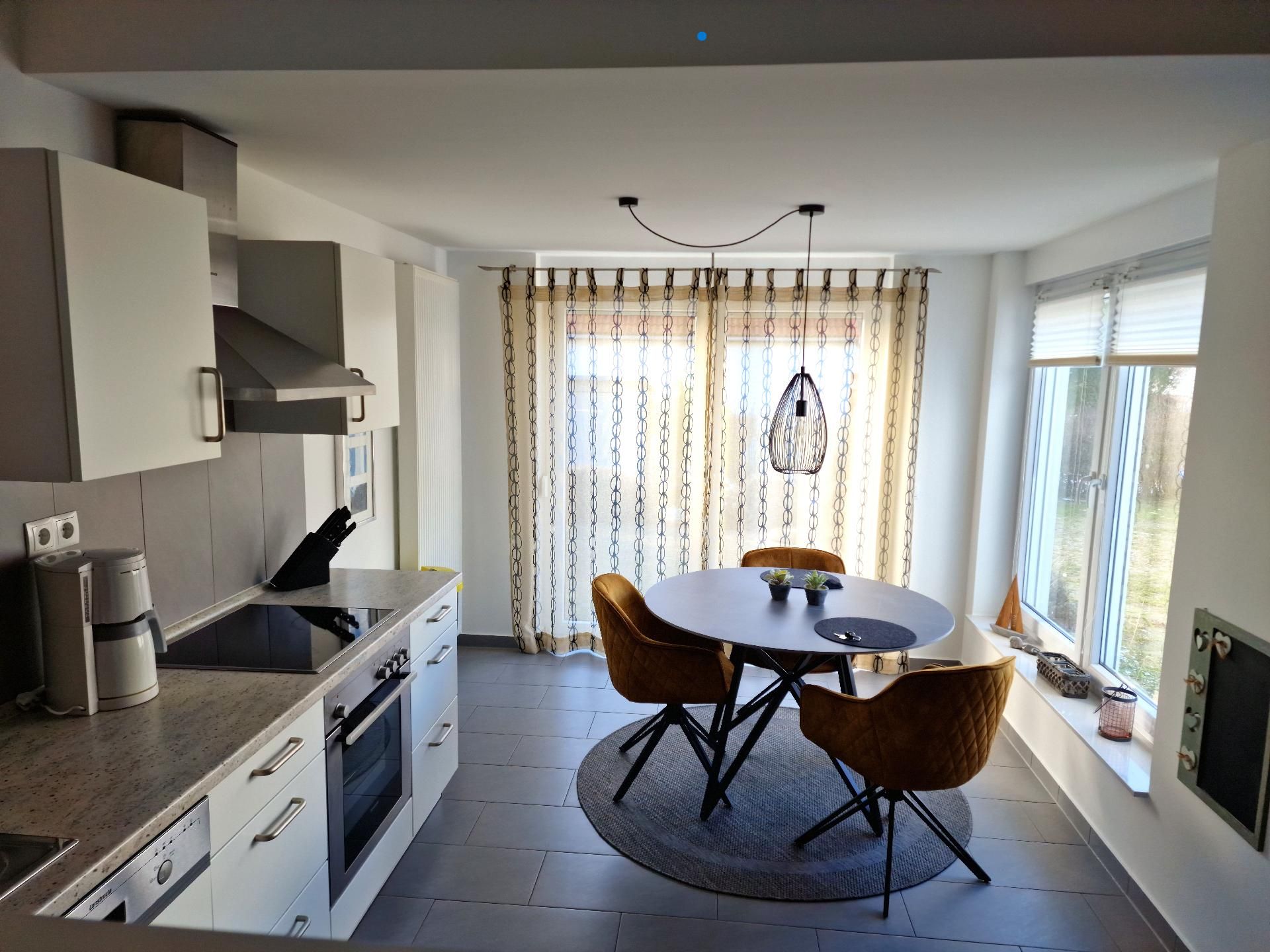Zur ebenerdig, rechts gelegenen Ferienwohnung Poseidon gehört eine Terrasse mit Gartenmöbeln und Blick in den Garten. Sie erwarten eine großzügig geschnittene Wohnküche, 1 Schlafzimmer mit Doppelbett - für 2 Erwachsene und ein Kleinstkind - sowie ein modernes Duschbad. Die neue, voll ausgestattete Einbauküche lässt keine Wünsche offen. Elektroherd (Cerankochfeld, 4 Platten), Backofen, Kühlschrank, Tiefkühler, Kaffeemaschine, Toaster und elektrischer Wasserkocher. Dazu ein Esstisch mit 4 Sitzplätzen und Blick in den Garten.Wir würden uns sehr freuen, Sie als Gäste im Haus Sandra begrüßen zu dürfen.