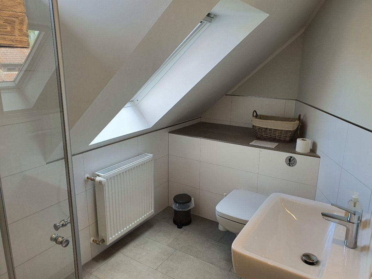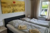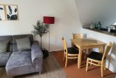 Ihre Ferienwohnung im ersten Obergeschoss hat eine Wohnfläche ca. 45 qm und ist für die Unterbringung von zwei Erwachsenen und einem Kleinstkind hervorragend geeignet. Sie erwartet ein kombinierter Wohn- und Essbereich mit einer gemütlichen Couchecke. Im Schlafzimmer befindet sich ein 1,80 m breites Bett. Ein schönes Badezimmer mit Badewanne und WC sowie Tageslicht gehört auch zur Wohnung.