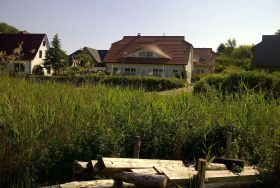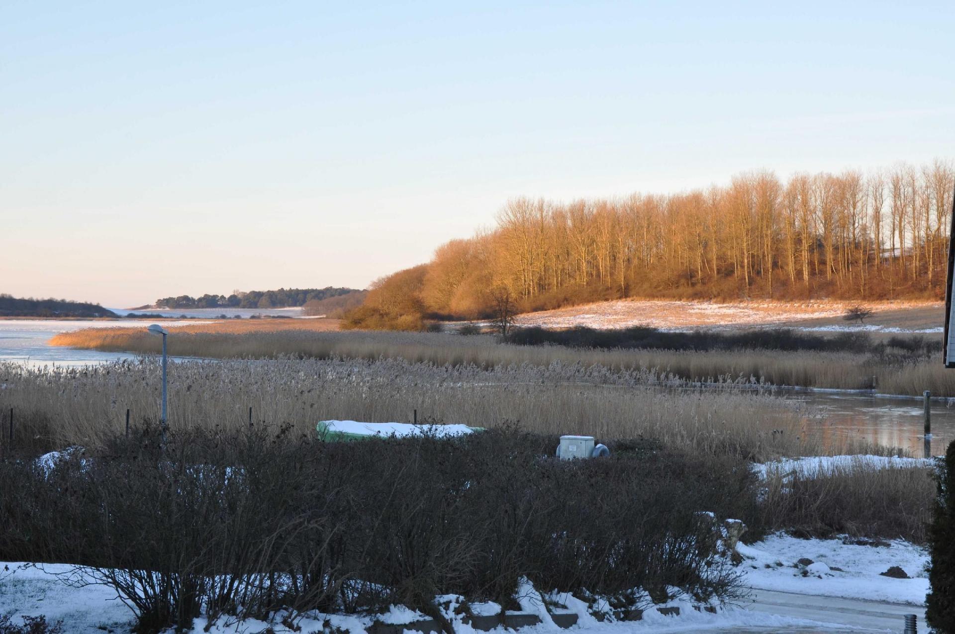 Das geräumige Ferienhaus liegt an der Dorfstraße etwas hangaufwärts. Die Dorfstraße mit Anliegerverkehr ist nur an einer Seite bebaut und läuft parallel zur Uferwiese, dem Schilfgürtel und dem Wasser. Die nächsten Einkaufs- und Ausgehmöglichkeiten befinden sich ca. 4 km entfernt.