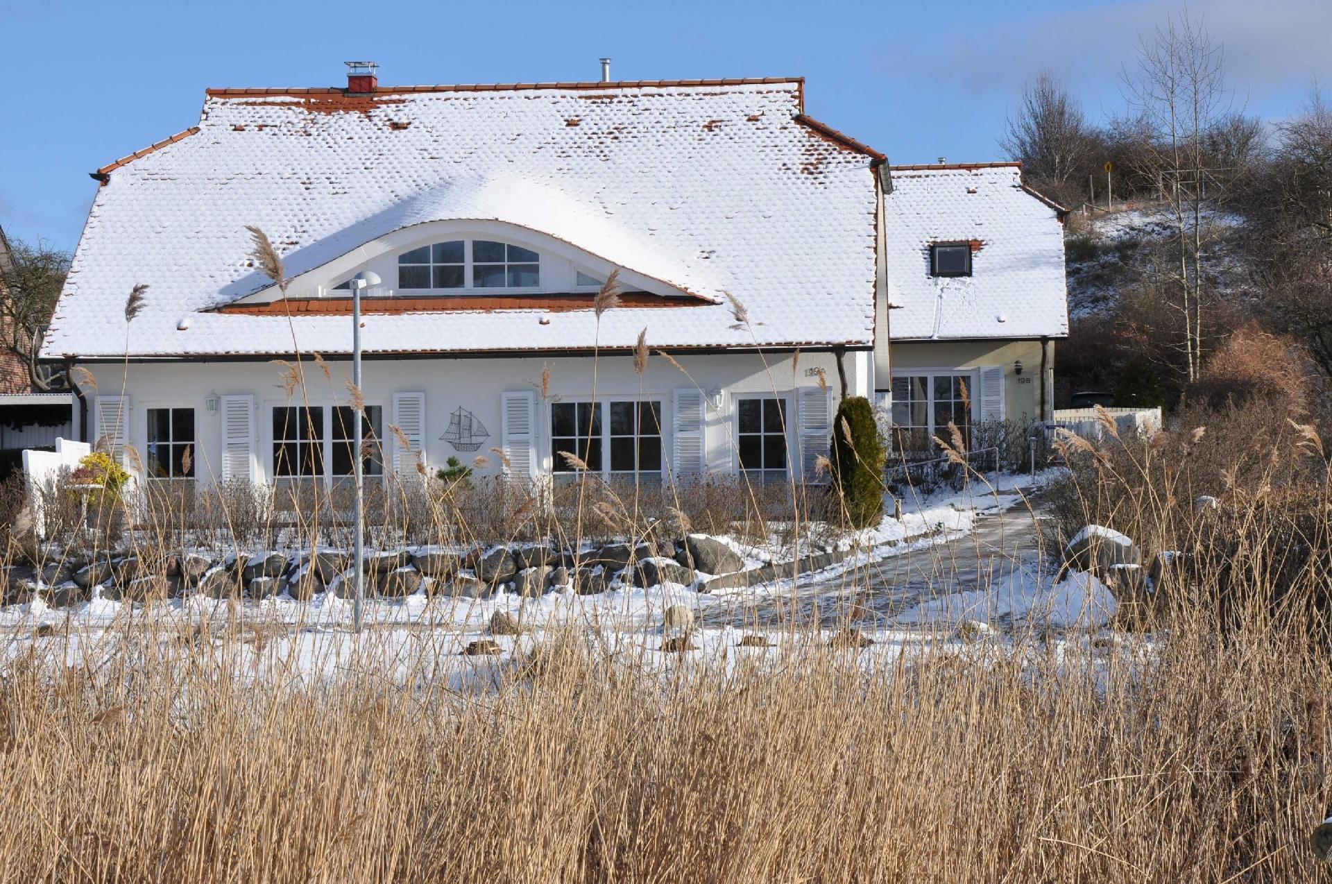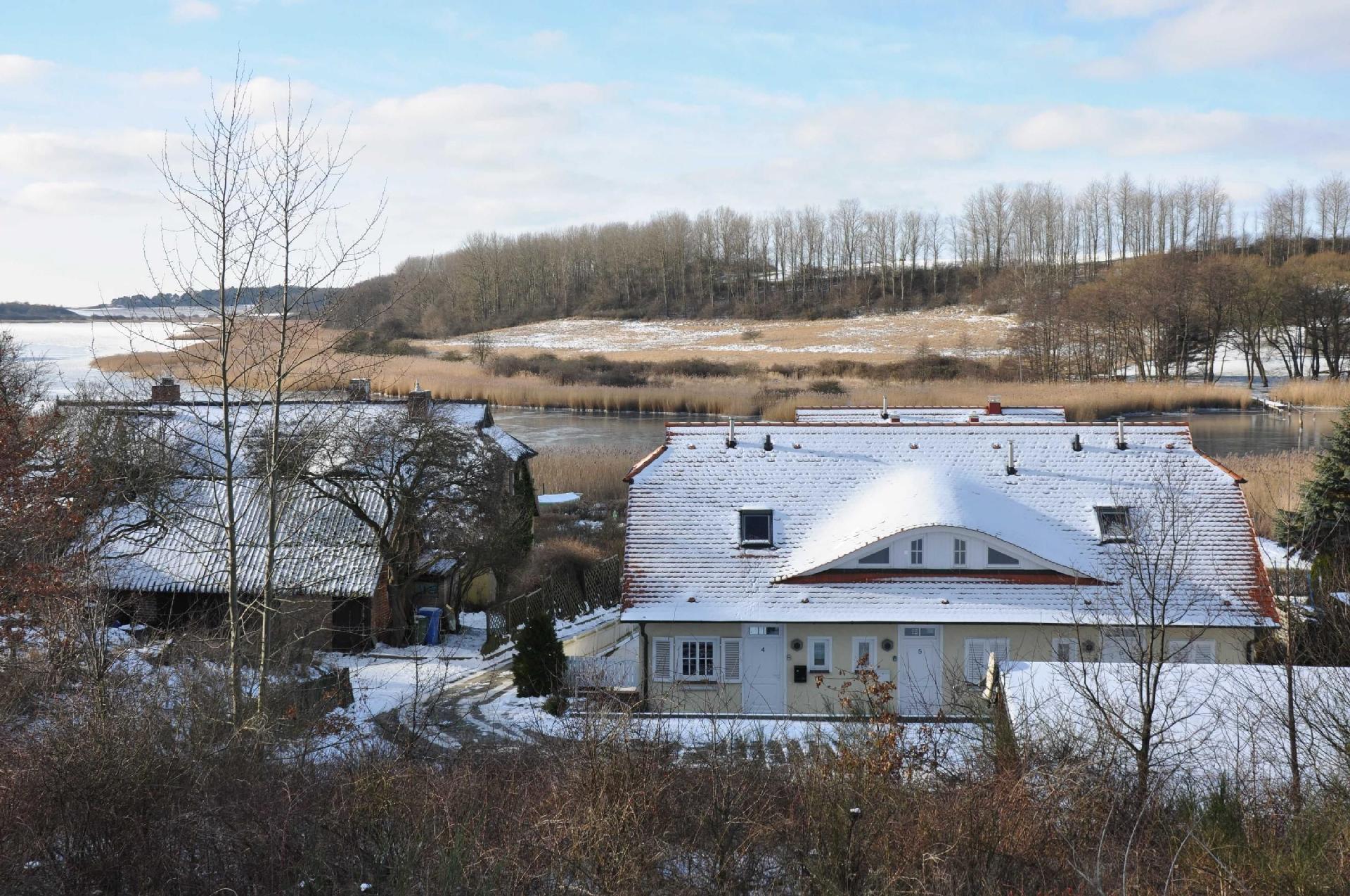 Die Südwest-Hanglage dieses Ferienhauses (Reihenendhaus) mit traumhaftem Blick auf Wasser- und Boddenlandschaft sowie den Yachthafen bietet absolute Ruhe im schönen, individuell gestalteten modernen Landhaus Ambiente mit hohem Komfort für zwei Erwachsene und zwei Kinder.