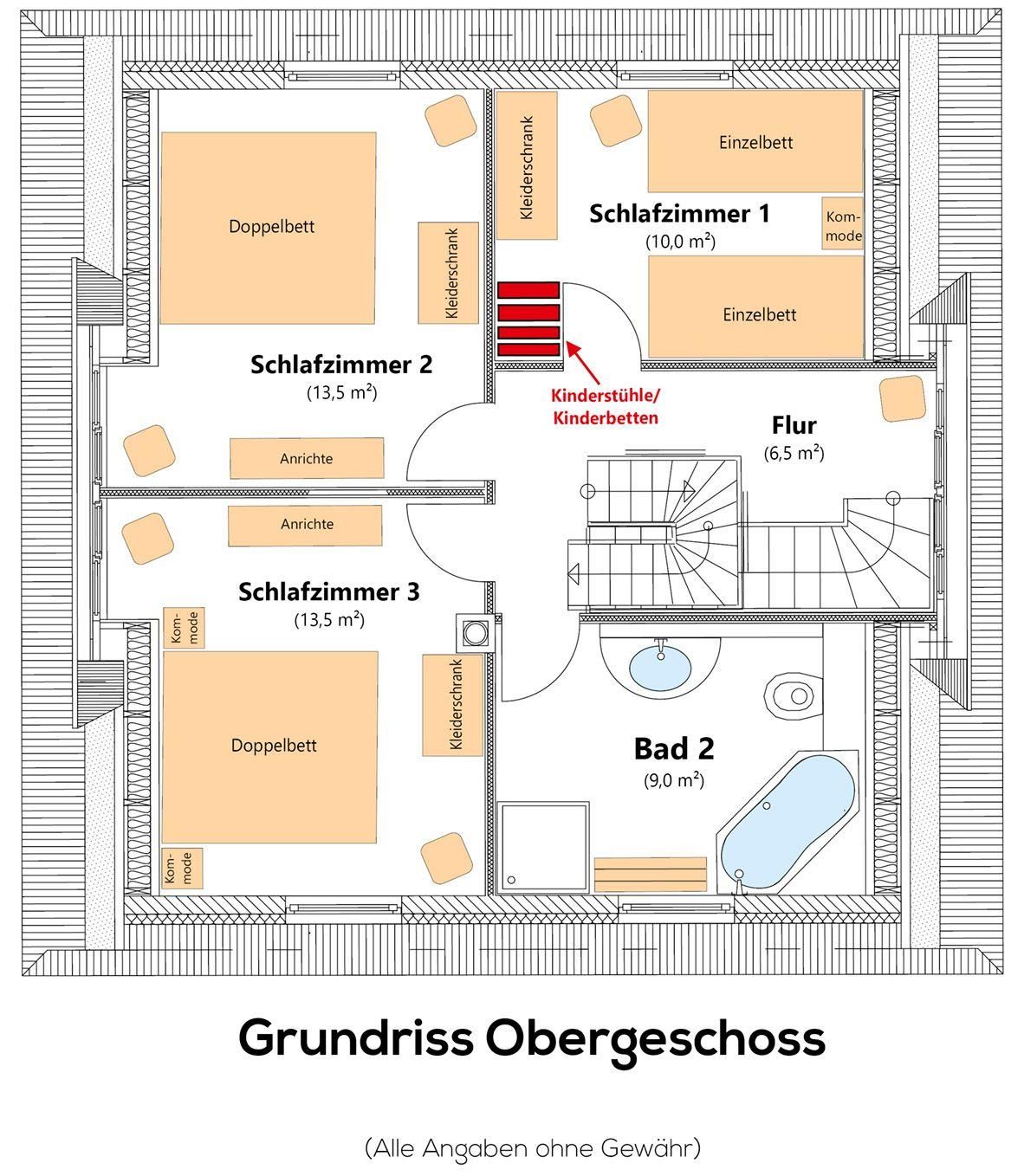Schlafmöglichkeiten: Anzahl Doppelbetten (1,80m Breite): 1; Anzahl Doppelbetten (größer als 1,80 m Breite): 2; Anzahl Einzelbetten: 4