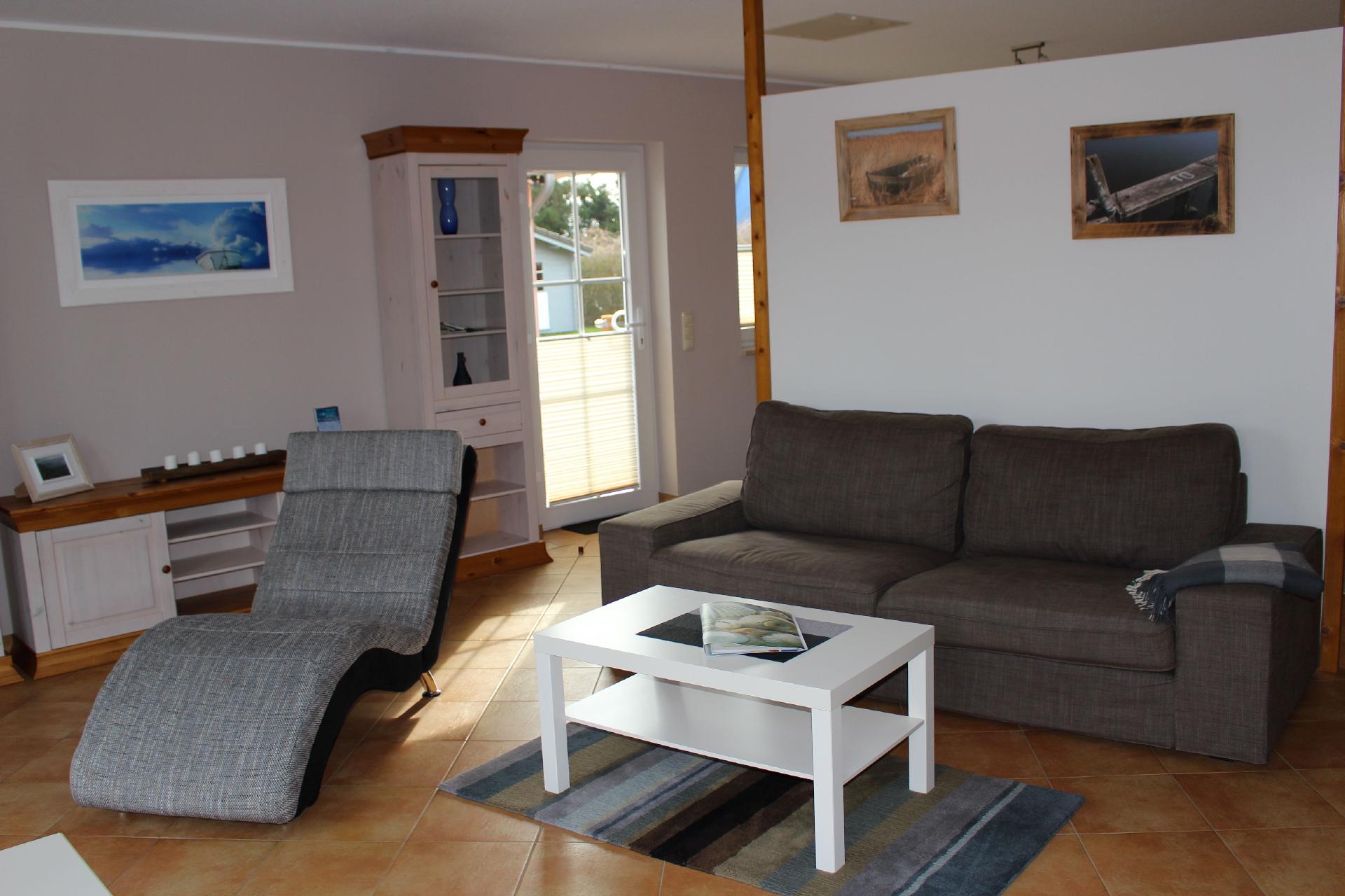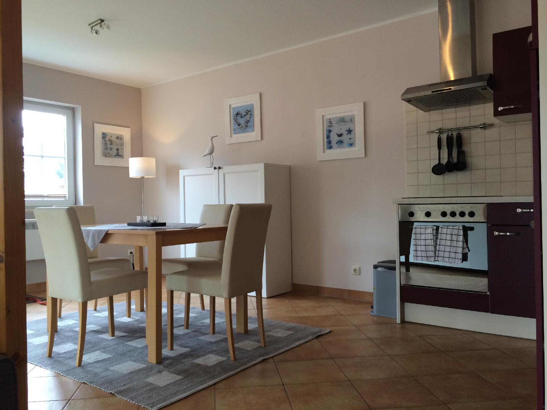 Die 65qm große Ferienwohnung verfügt über eine komplett eingerichtete, moderne Küche mit Geschirrspüler, Elektroherd mit Ceranfeld und Backofen. Die komfortable und gemütliche Einrichtung mit Relaxliege und Kamin lädt zum Verweilen ein.