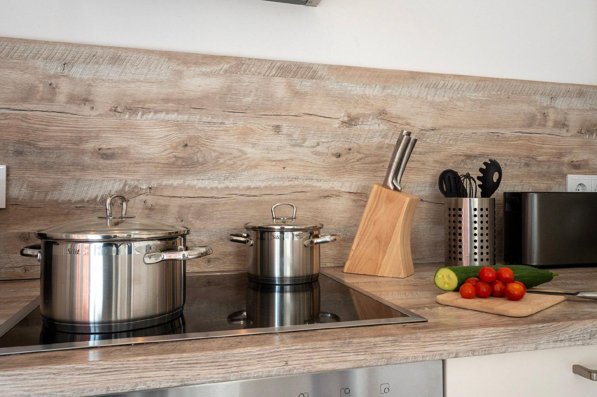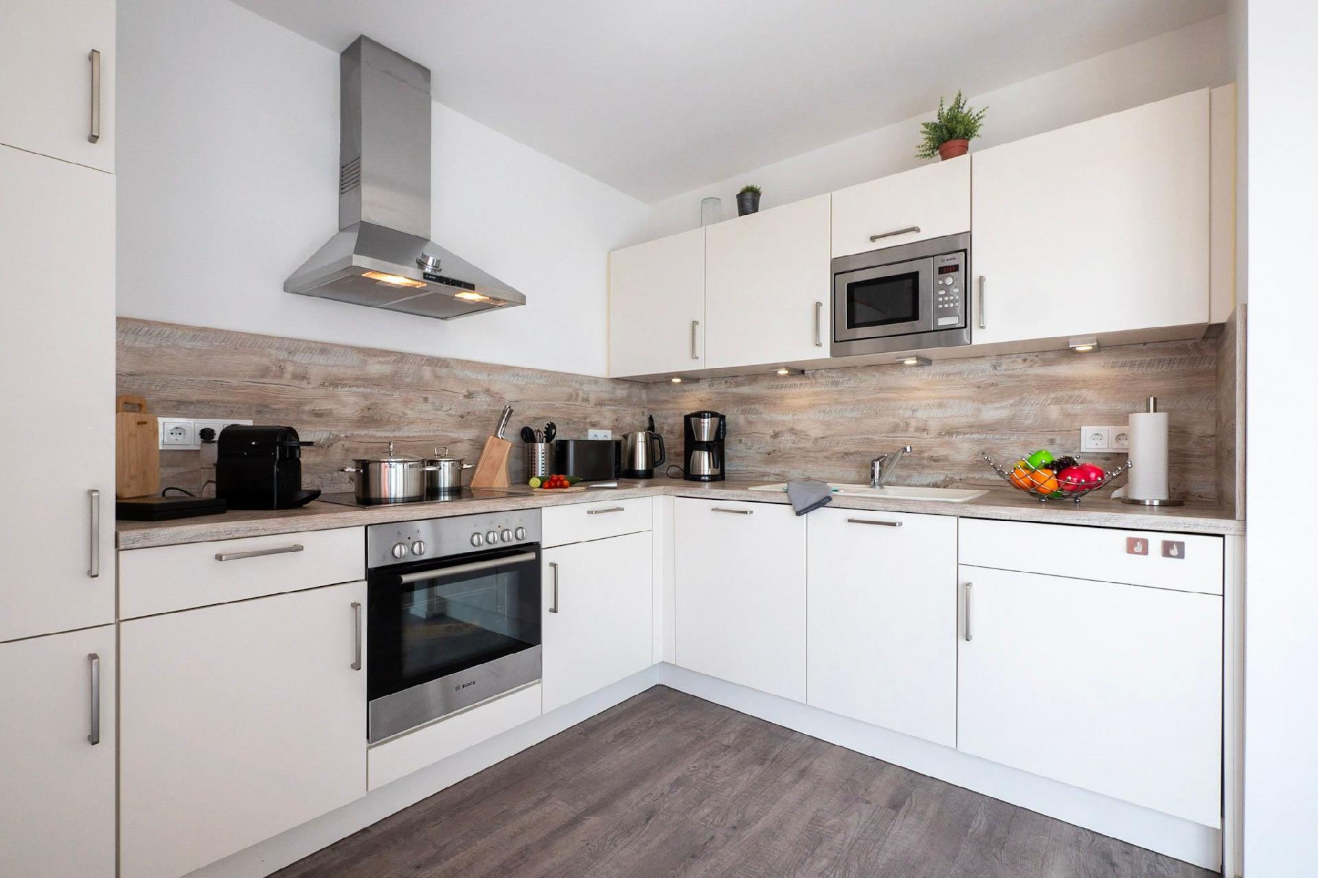 Kochen: Backofen; Ceranherd; Gefrierfach; Kaffeemaschine; Kaffekapselmaschine; Kühlschrank; Mikrowelle; Spülmaschine; Toaster; Wasserkocher