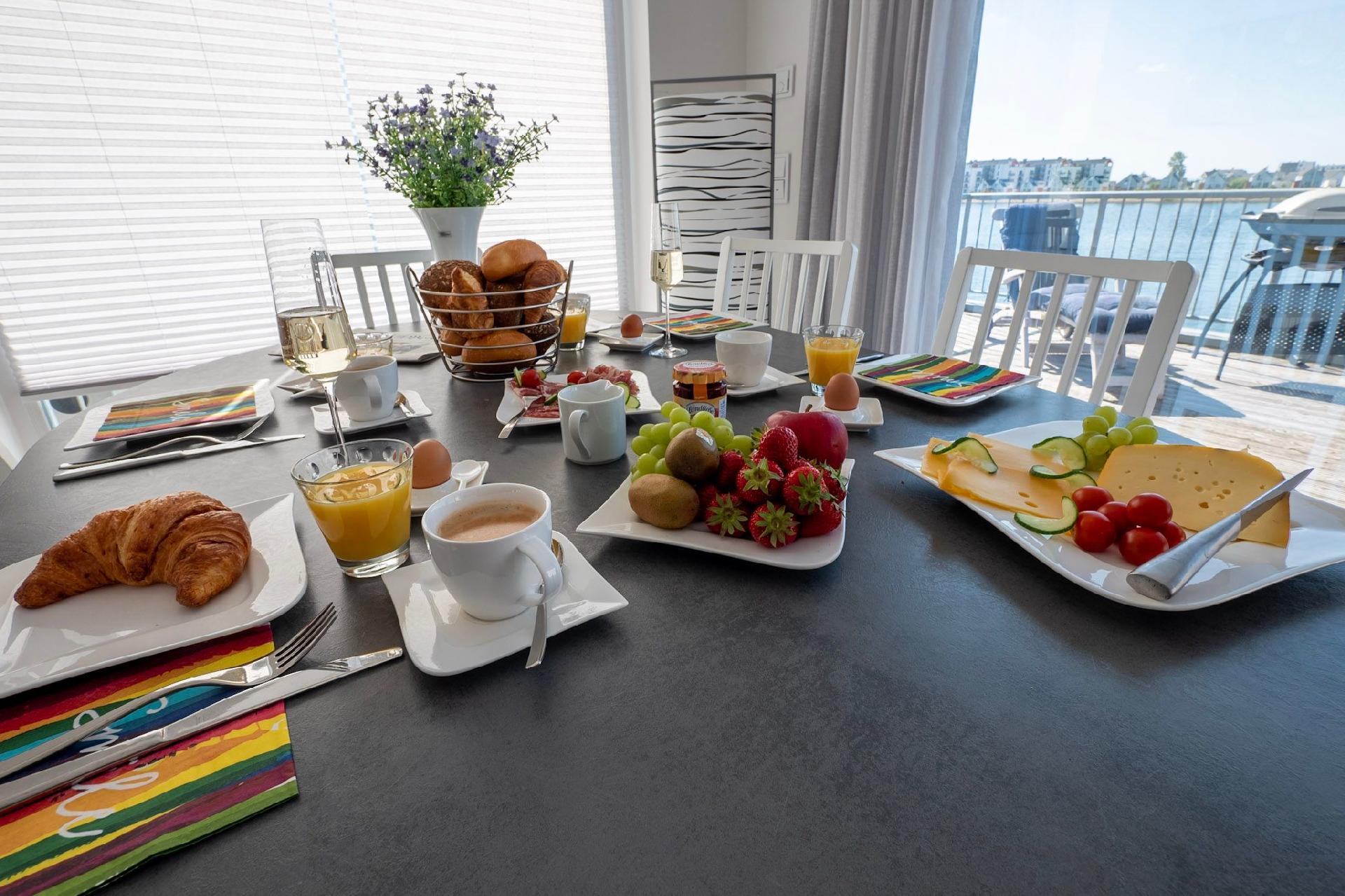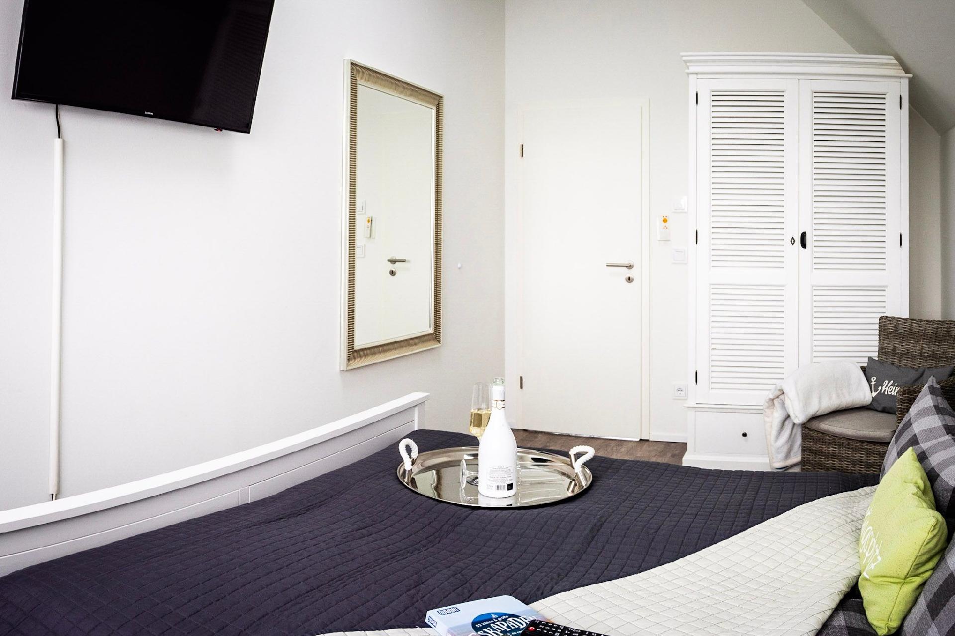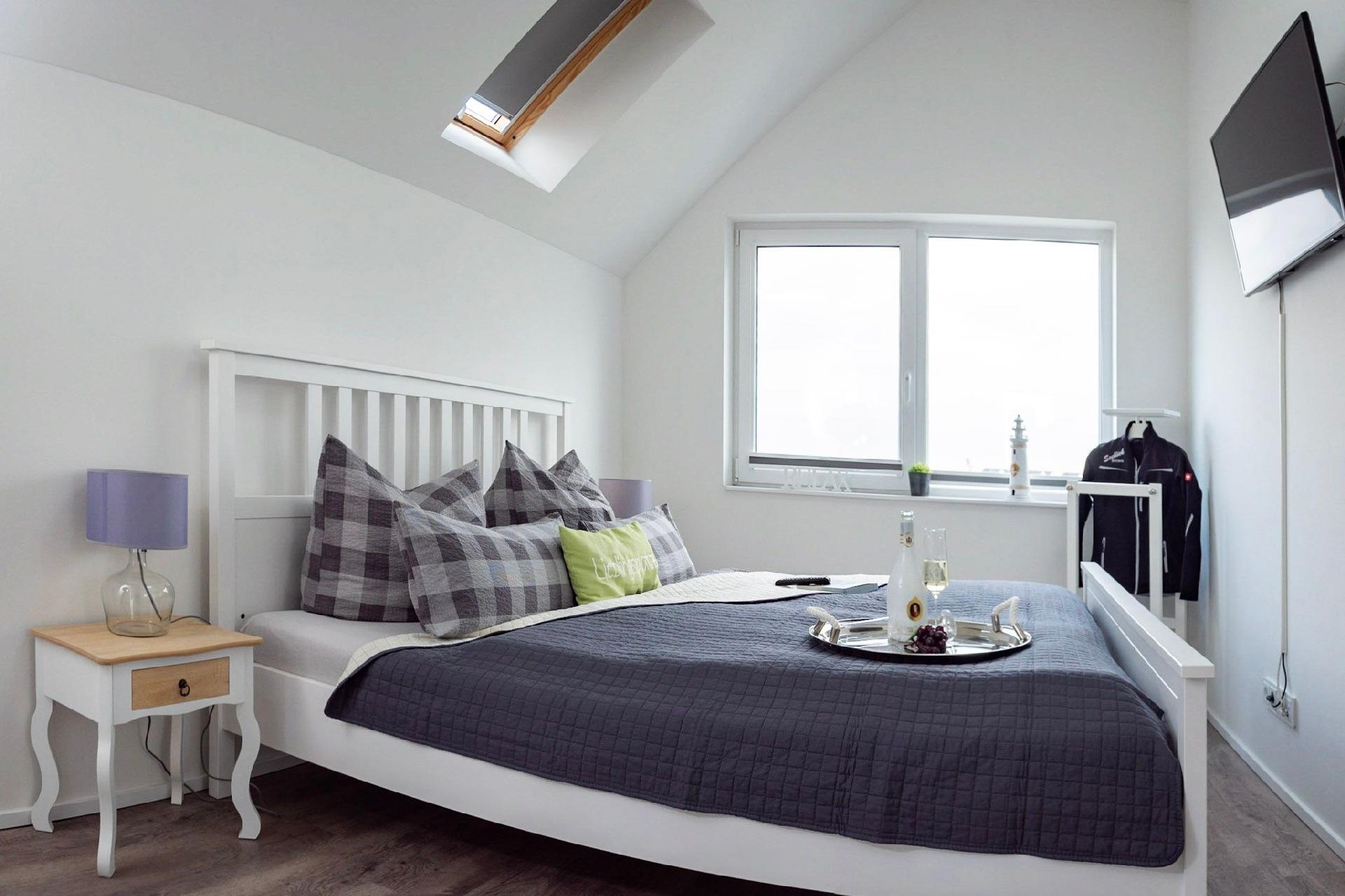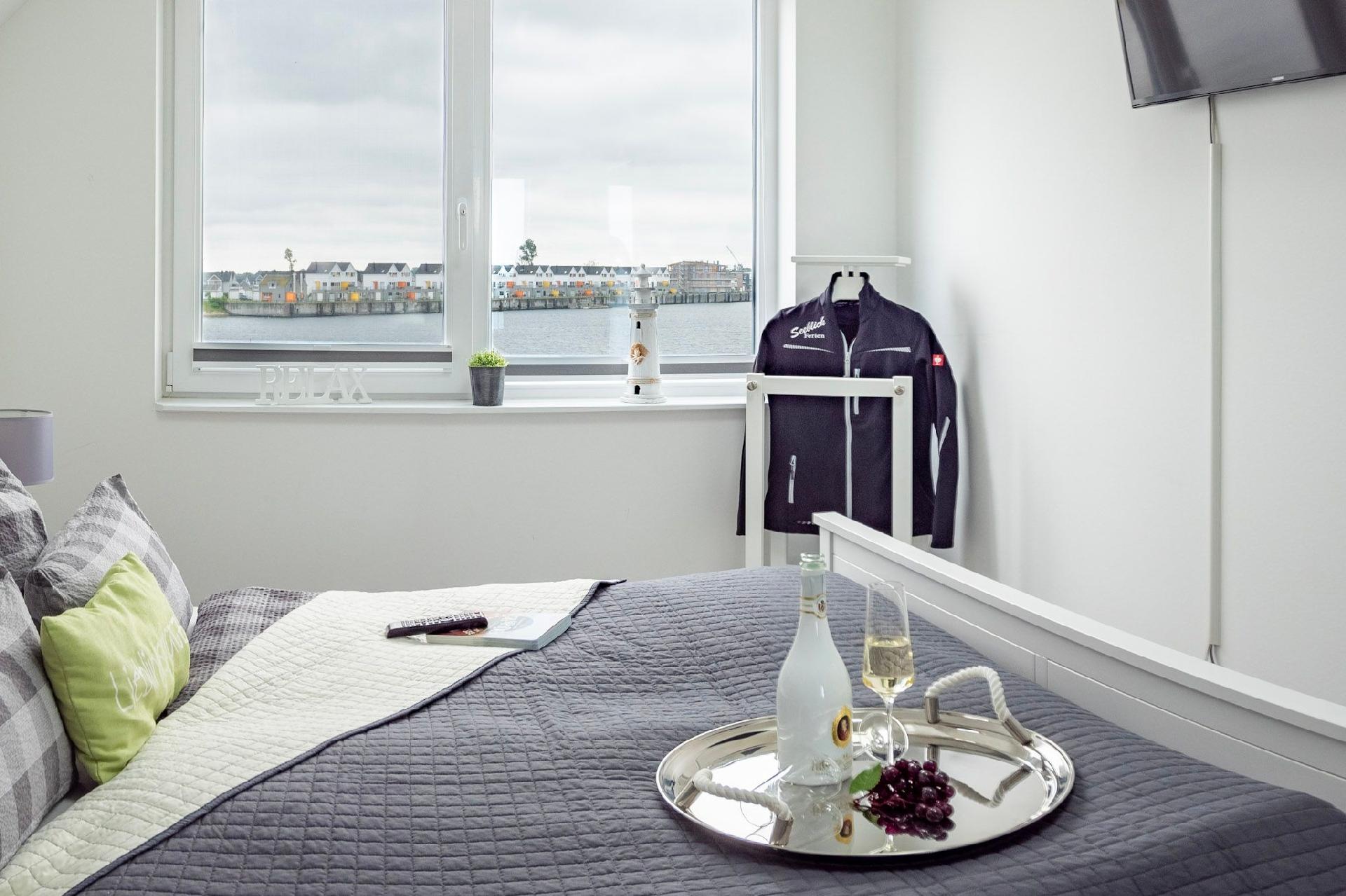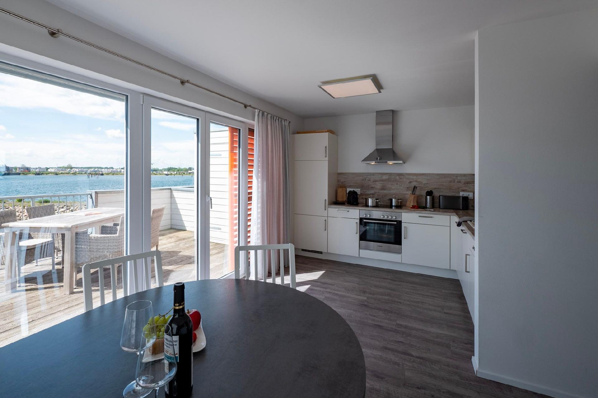 Bei diesem Ferienobjekt handelt es sich um eine Maisonette Wohnung im ersten und zweiten Obergeschoss.Die Ferienwohnung Ostseeflair by Seeblick Ferien ORO betritt man über eine Außentreppe, von hier könnte man sofort auf den ersten Südbalkon (ca.25 m²) gelangen, der mit einem Strandkorb, Teak-Deckchair und weiteren gemütlichen Möbeln zum Relaxen auf Sie wartet. Der Eingangsbereich führt in den Wohn-und Essbereich mit zusätzlichem Duschbad und WC. Auf der zweiten Ebene befindet sich Ihr Badezimmer, dies lässt Wellnessherzen höherschlagen, denn es verfügt über eine bodengleiche XXL Walk-In-Dusche, eine Whirlpool-Badewanne, eine Sauna (Infrarotkabine) mit Farblichttherapie und ein Radio mit Bluetooth. An der Wellnessoase vorbei, folgen zwei gut gestaltete Schlafzimmer mit Platz für fünf Erwachsene und einen traumhaften Blick aufs Wasser. Das Masterbedroom verfügt über ein Doppelbett (1,80 x 2,00) mit zusätzlichem 40 Zoll Smart TV, Blick auf die Marina, während ein Etagenbett (unten1,40 x 2,00 max.180kg), (oben 90x200 max. 75 kg) für 3 Personen im zweiten Schlafzimmer mit Blick auf die Schlei, auf Sie wartet. Im Fokus steht aber der perfekt umgesetzte lichtdurchflutete Wohn- und Essbereich mit Holz befeuertem Kaminofen, bodentiefen Panoramafenstern, welcher Loftartig gestaltet ist, sodass alle Räume fließend ineinander übergehen und sich der Wohnbereich mit der Natur verbindet. Die Integration der offenen Küche mit hervorragender Ausstattung und funktionalem Design, steht dem gemütlichen Beisammensein auch beim Zubereiten von allerlei Köstlichkeiten nichts im Wege. Die Wasserkulisse vor dem Essbereich mit 180 Grad Panoramablick auf den gesamten Hafen und die Ostsee ist hierbei zum Greifen nah – das ist Ostseeflair. Den zweiten Nordbalkon (ca. 8m²) betritt man über den Wohnbereich, hier können es sich unsere Gäste auf einer zusätzlichen Bestuhlung gemütlich machen und bei einem Sundowner mit Abendsonne den Tag ausklingen i dieser Wohnung sind spektakuläre Sonnenlichtspiele durch die zwei Balkone in Süd- und Nordausrichtung zu erwarten. Der Einrichtungsstil entspricht der exklusiven Lage der Ferienwohnung: Landhausstil gepaart mit klaren Farben und Formen versprechen Ruhe und Rückzug, während einzelne Farbakzente für erfrischende Leichtigkeit sorgen.Die gesamte Ferienwohnung lässt sich über die Fußbodenheizung einfach temperieren und bietet dank des Kaminofens und der Sauna das ganze Jahr über eine angenehme Wärme und eine gemütlich-wohlige Atmosphäre. Für Unterhaltung sorgen im Wohnbereich ein 55 Zoll Smart TV mit Bluetooth und Samsung Soundbar, eine Playstation, Blu-ray-Player, ein separates Internet Radio sowie eine r Weber Elektrogrill rundet die hochwertige Ausstattung ab.Haustiere sind in dieser Fewo nicht gestattet.Unsere Fewo ist ein Nichtraucherobjekt.kostenloses WLANEin Kinderreisebett und ein Kinderhochstuhl stehen für unsere kleinen Gäste bereit. Bettwäsche/ Handtücher können selbst mitgebracht oder aber in Form von Wäschepaketen von unserer Agentur ausgeliehen werden. Die Betten wären dann bei Anreise bezogen. Die Wäschepakete müssen Sie separat bestellen.Heizungs-, Strom- und Wasserkosten sind im Mietpreis der Fewo Ostseeflair by Seeblick Ferien inbegriffen.Eine Kaution ist bei Anreise zu hinterlegen, diese werden sofort bei Check Out i Fragen oder Problemen vor Ort stehen wir Ihnen gern zur Verfügung. Vor Ort ist außerdem unser Gästeservice, der Ihnen gern weiterhilft und mit Ihnen, ganz im Gegensatz zu einigen Mitanbietern, gemeinsam in die Wohnung fährt und Ihnen alles zeigt. Bei uns geniesen Sie die exklusivität eines persönlichen Check In und Out in Ihrer gebuchten Ferienwohnung. Es gelten verschiedene Preise und Mindestaufenthalte zu verschiedenen Saisonzeiten, welche technisch bedingt von der angegebenen Nächteanzahl abweichen können.