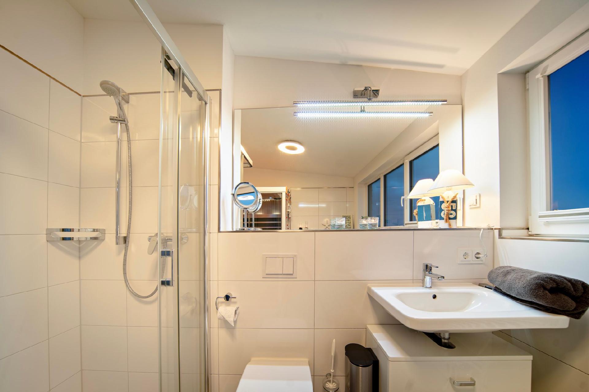 Im Erdgeschoss steht Ihnen ein zusätzliches Bad mit bodengleicher Dusche und WC zur Verfügung.