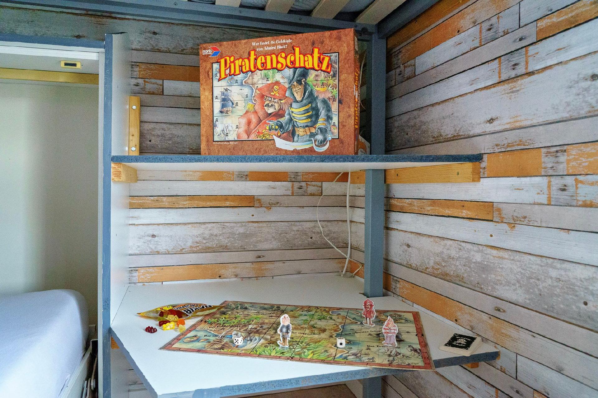 Auch die kleinen Piraten werden sich im Ferienhaus Boje by Seeblick Ferien ORO rundum wohlfühlen. Es wurde an alles gedacht, um den Familienurlaub unbeschwert genießen zu können. Es stehen ein Babybett, ein Kinderhochstuhl, ein Hocker, Kindergeschirr und sogar Lego Duplo zur Verfügung. Damit ist dafür gesorgt, dass auch die kleinsten Gäste sich wie zu Hause fühlen und sicher schlafen können. Neben der umfangreichen Ausstattung für die Kleinen gibt es auch themenbezogene Spiele, die bereitstehen.