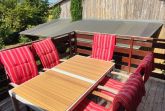 Kids welcome! Für unsere jüngeren Gäste gibt es nebenan einen Spielplatz mit Klettergeräten, Schaukeln, Sandkasten, Tischtennisplatte etc.Gartenspiele wie Boccia oder Kubb (Wikinger-Schach), Federball- und Tischtennisschläger liegen für unsere Gäste bereit.Im Sommer ist für die Grösseren (und die ganz Grossen) ein 5m-Trampolin im Garten aufgebaut.Und die Pools sind genau richtig, um die Grossen, die Kleinen und die Minis abzukür Autoverkehr im Dorf hält sich schwer in Grenzen, und so kann man den Nachwuchs ruhig mal springen lassen ...Für die ganz Kleinen reicht ja vielleicht auch das Sandboot im Garten und Sie relaxen im Liegestuhl oder der Hängematte in der Nähe?Wenn es mal regnet oder Sie einfach keine Lust auf Ausflüge haben - kein Problem! Unsere Bibliothek/Videothek/Spielothek enthält bestimmt auch für Sie etwas Passendes.Wie immer Sie Ihren Tag gestalten - abends können können Sie mit der Familie oder Freunden im Garten grillen oder den Sonnenuntergang im gemütlichen Liegestuhl oder an der Gartenbar bei einem Sundowner geniessen.Und zum gemütlichen Beieinandersitzen bei Anbruch der Dunkelheit gehört einfach eine Feuerschale...
