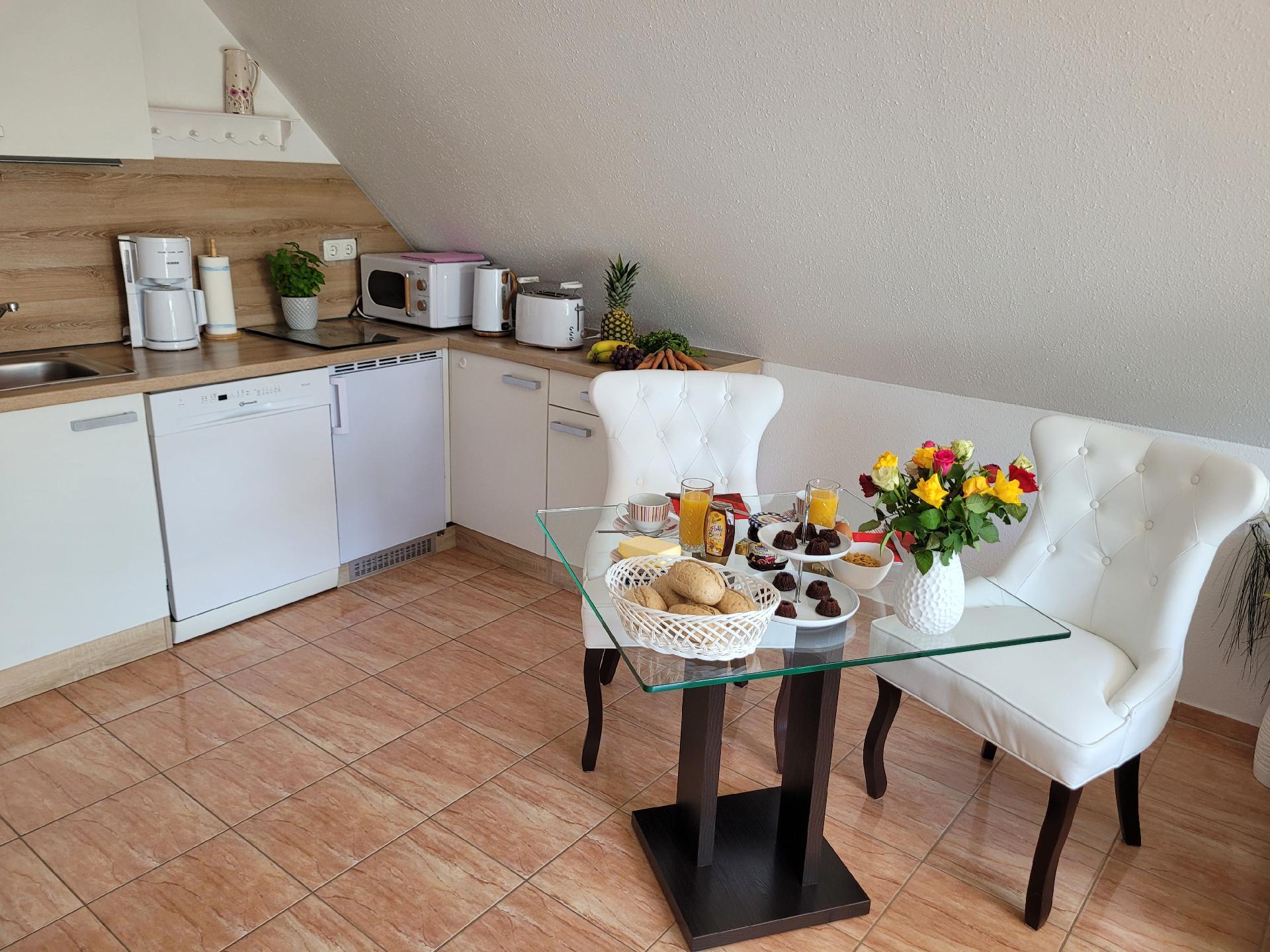 Kochen: 2-Plattenherd; Gefrierfach; Kaffeemaschine; Kaffekapselmaschine; Kühlschrank; Mikrowelle; Minibackofen; Spülmaschine; Toaster; Wasserkocher