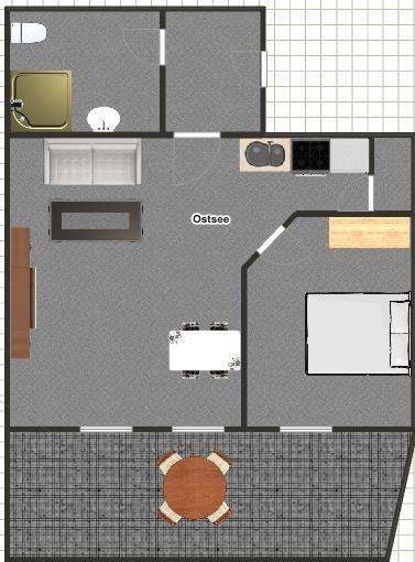 Die Wohnung erreichen Sie durch einen großzügigen Flur mit Windfang. Hier erwartet Sie dann ein schönes Wohnesszimmer mit Schlafcouch und Küche mit Kühlschrank, Mikrowelle, Spühlmaschine, Herd und Backofen. Im Haus befindet sich ein Münzwaschautomat und Trocker. Das Schlafzimmer liegt zur Terasse und hat einen Ausgang genauso wie das Wohnzimmer.